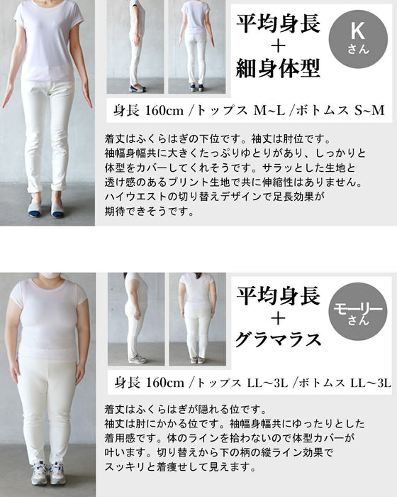 体型を選ばないゆるめのシルエットと五分袖デザインで、二の腕や腰回りをしっかりカバー。