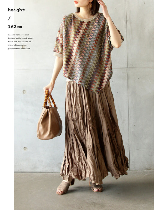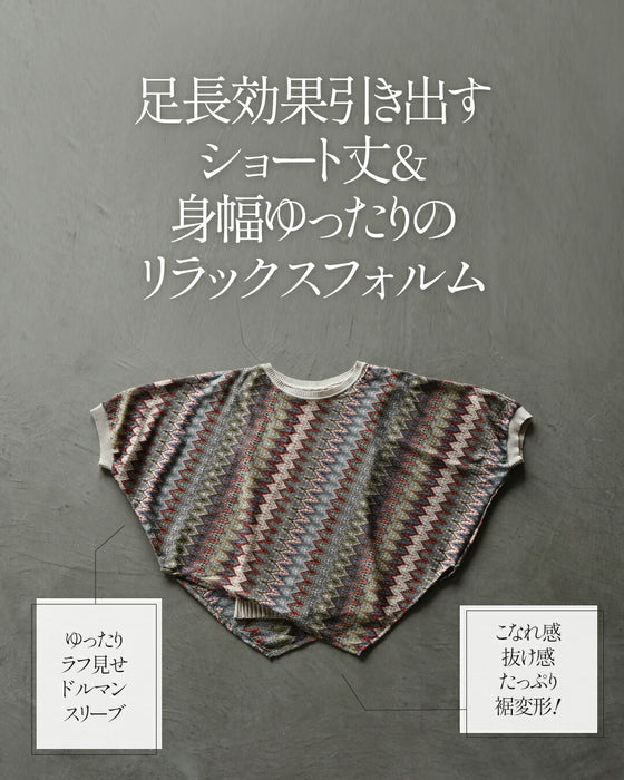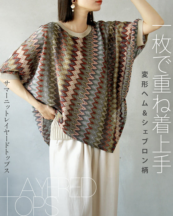 一枚で重ね着上手変形ヘム&シェブロン柄サマーニット