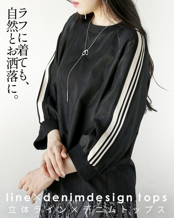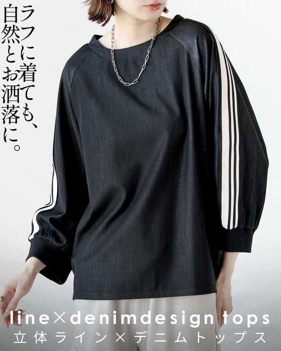 ラフに着ても、自然とお洒落に。立体ライン×デニムトップス
