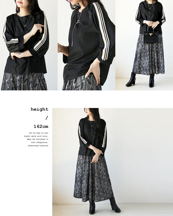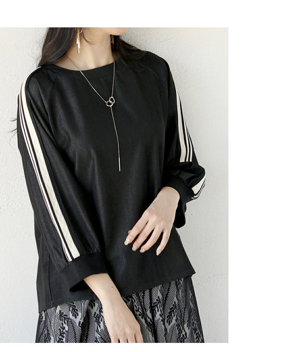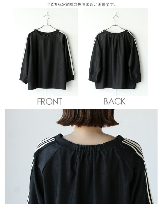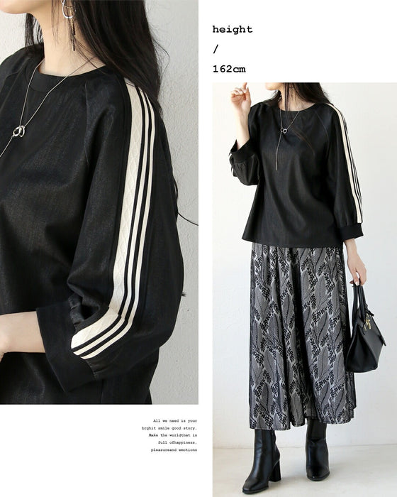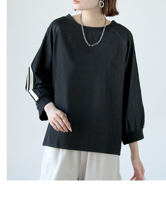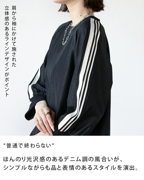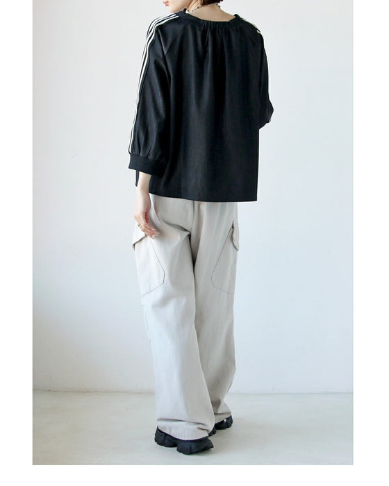 肩から袖にかけて施された立体感のあるラインデザインがポイント。 スポーティさと大人の抜け感をバランス良く取り入れた大人のスポカジトップスです。