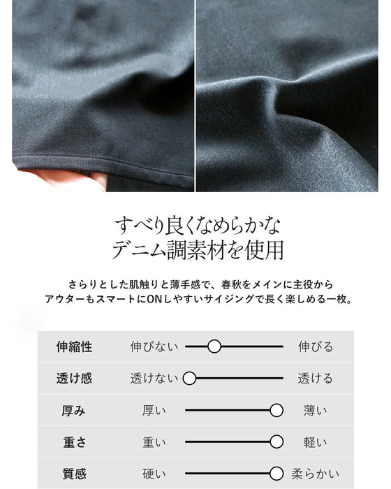すべり良くなめらかなデニム調素材を使用。 カジュアルさと上品さを兼ね備えた一枚。
