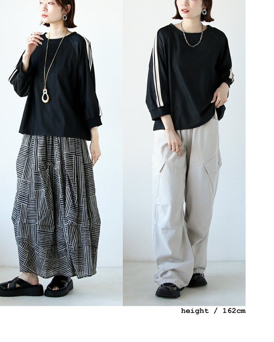 ラグランスリーブで肩まわりに動きやすさをプラスし、 デイリーに気軽に取り入れられるアイテムです。