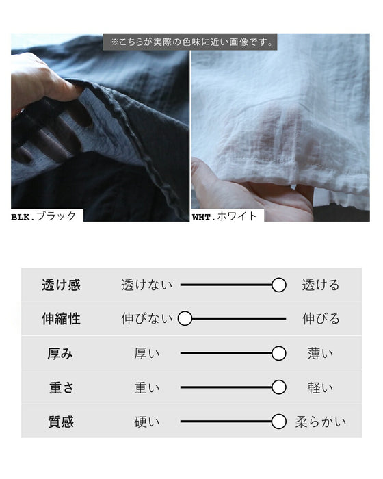 さらりとした薄手のシアー生地で、着心地、雰囲気、ともに軽やか。 ほんのりシャリ感のある薄手シアー素材。シーズンムードを演出し涼しげな印象に。 夏に嬉しい透け感で、インナーとのレイヤードも楽しめます。