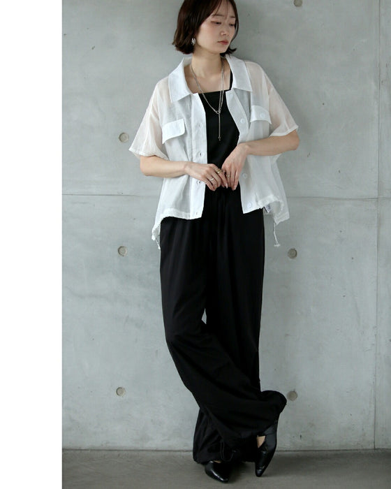 タンクトップやキャミと合わせて夏らしいレイヤードに。 ボタンを閉じてトップスとして着ても、開けて羽織りとしてもサマになる2WAYデザイン。 パンツスタイルにもスカートにも好相性で、オンオフ問わず活躍します。