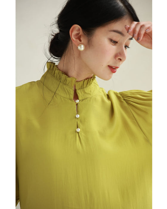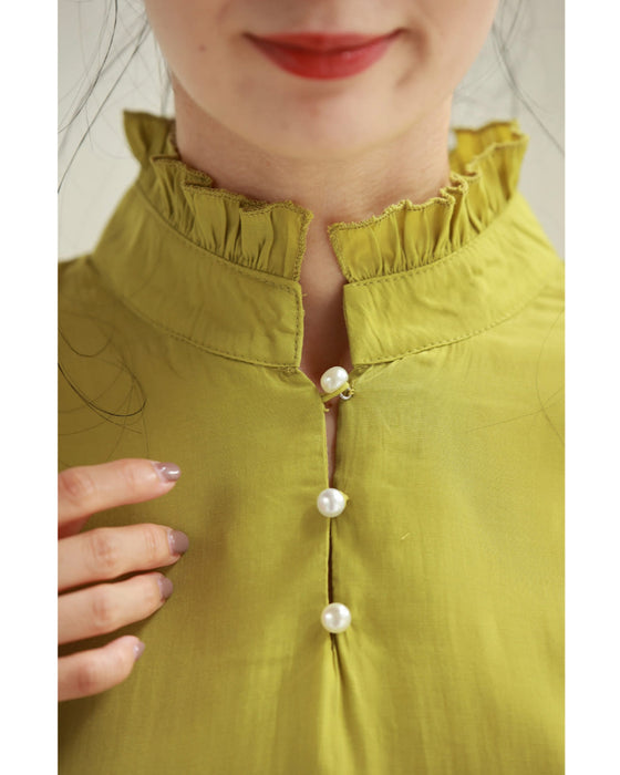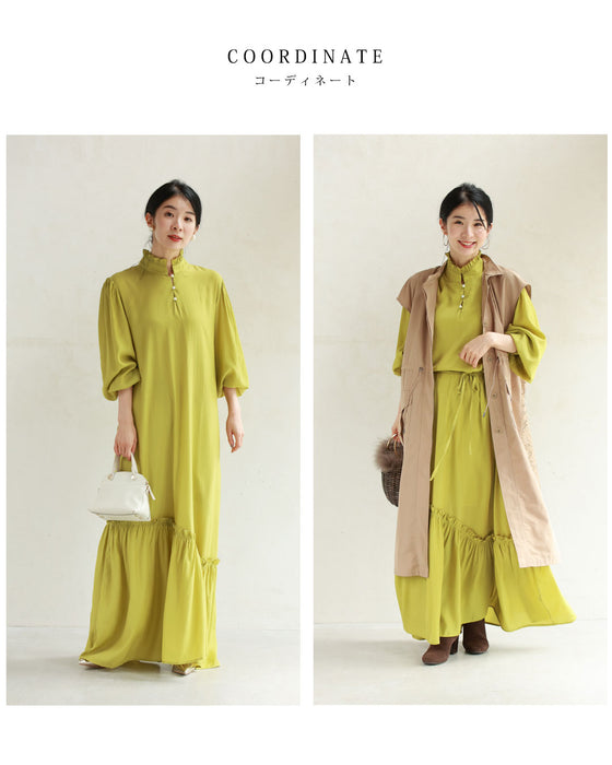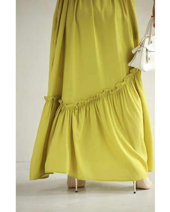■ Beautiful pistachio color and cute swaying frills <br>The gentle pistachio color is a beautiful shade that brightens the skin, and is sure to attract attention in any scene. The diagonally flowing frills that sway lightly with every step enhance your femininity.