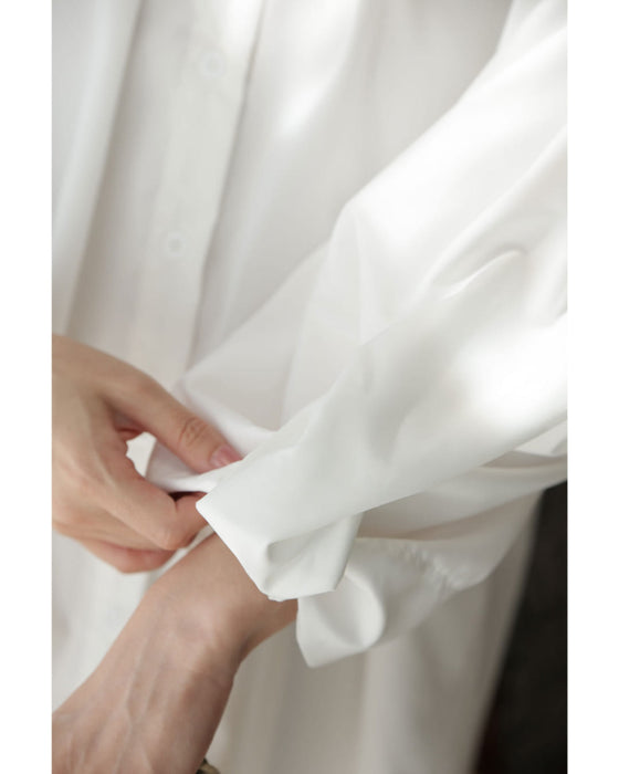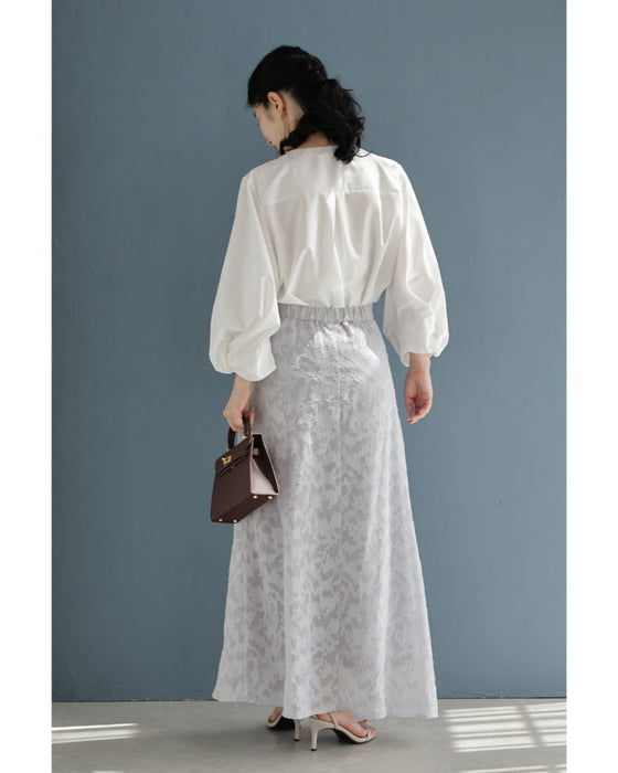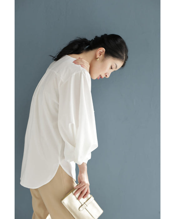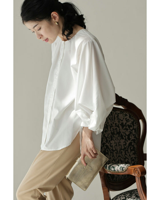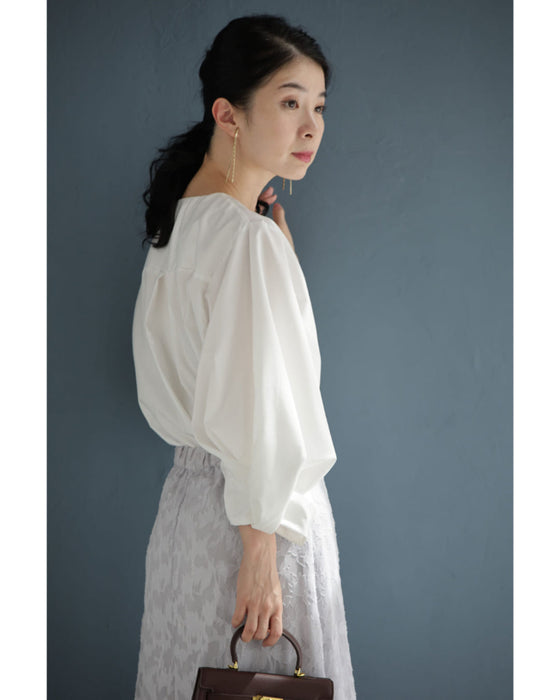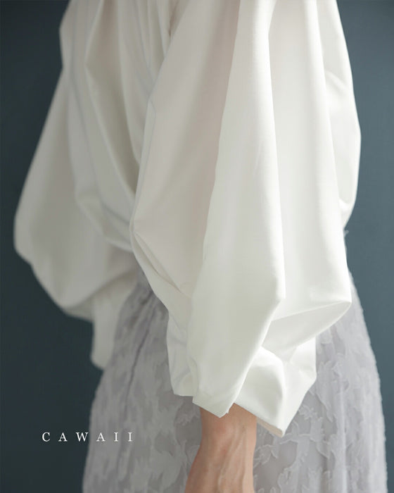 程よいハリ感で立体的なシルエットをキープ。ふんわり袖が華やぎをプラス。袖コンシャスなデザインで一枚で着映え。オフィスからお出かけまで活躍。