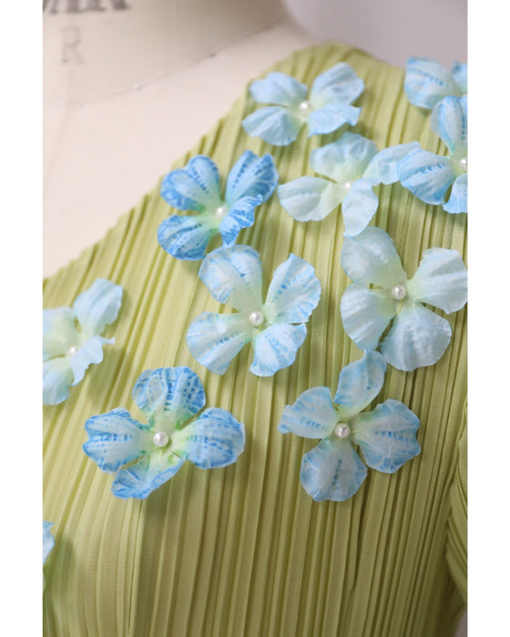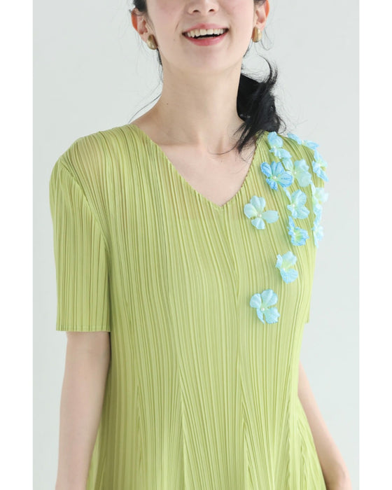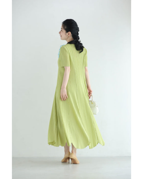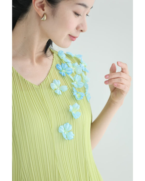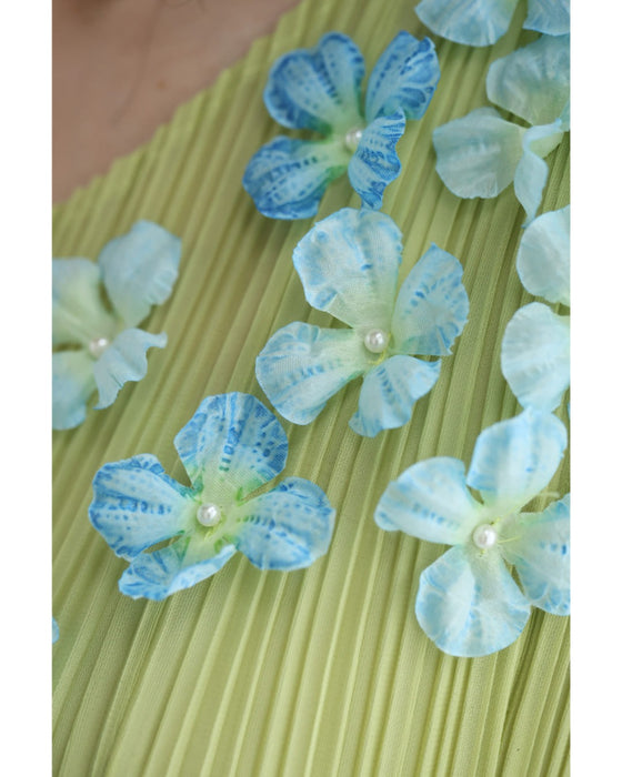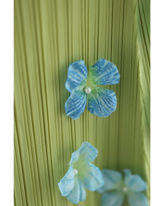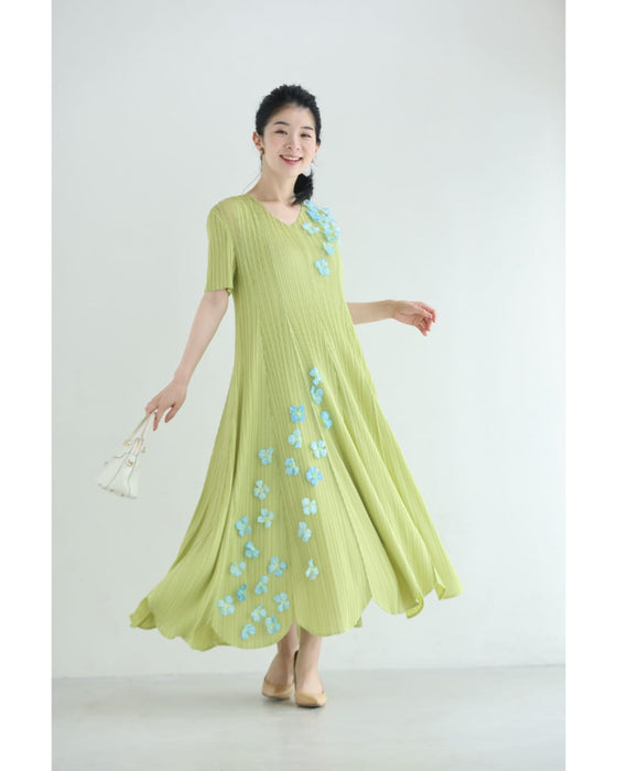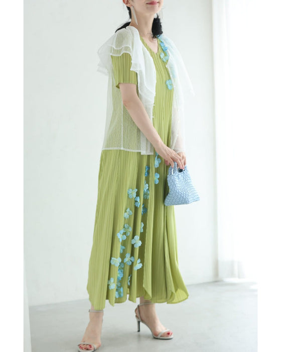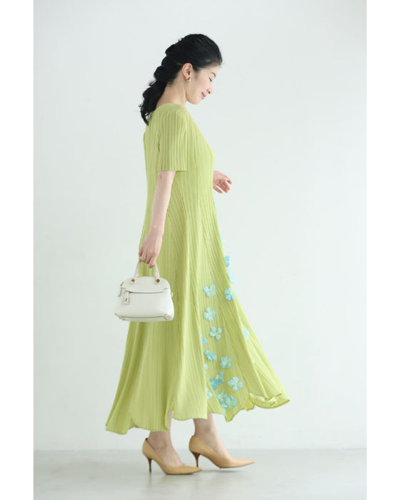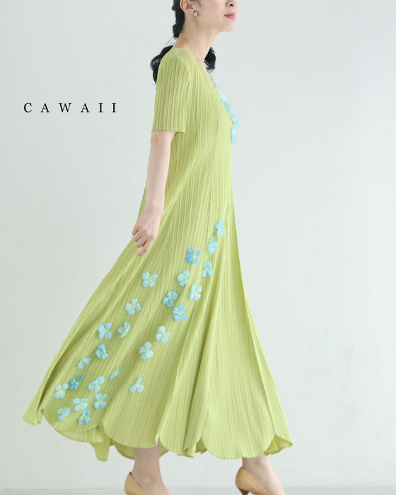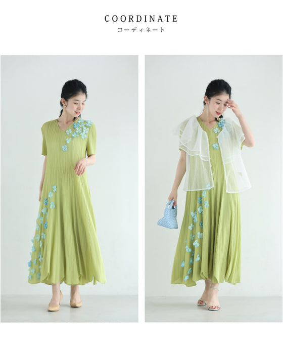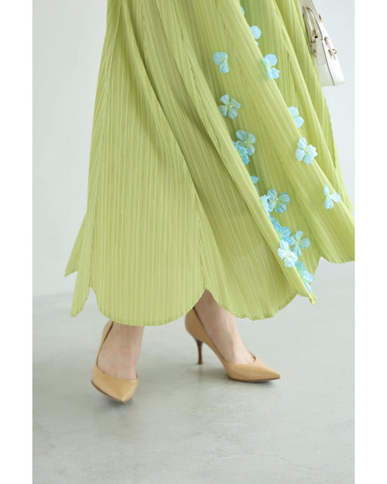 心ときめく花舞うアコーディオンプリーツロングワンピース