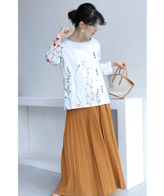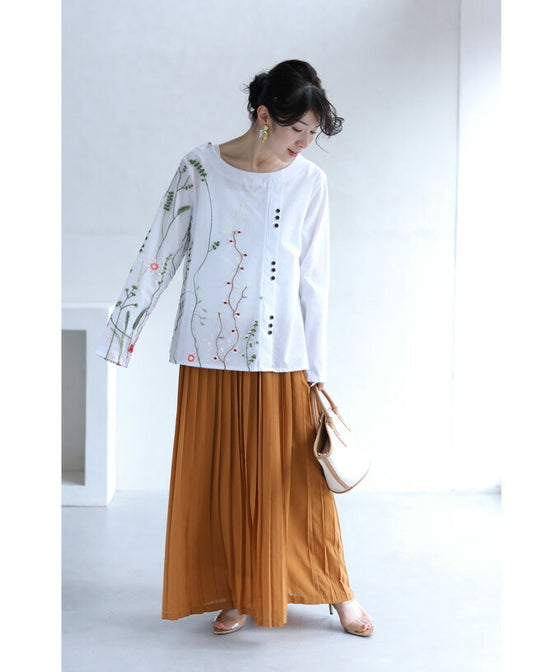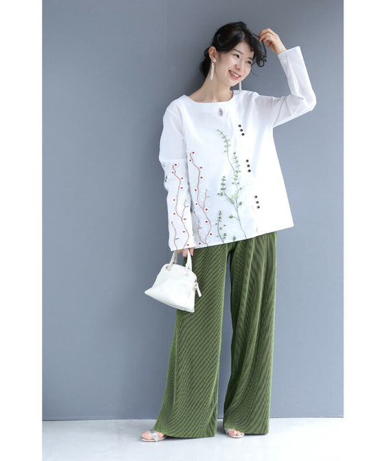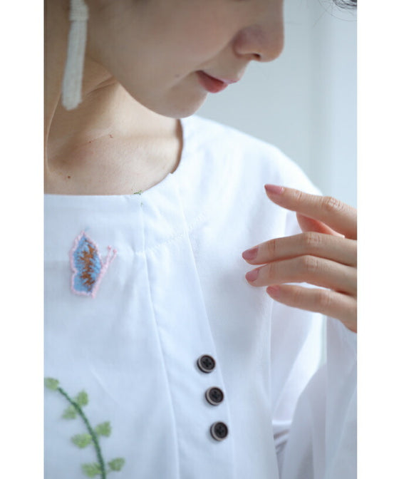 ■The asymmetrical embroidery gives a spring-like and glamorous impression.