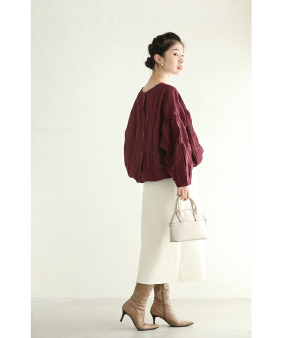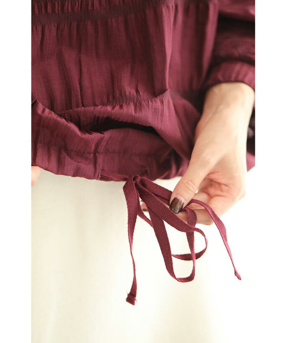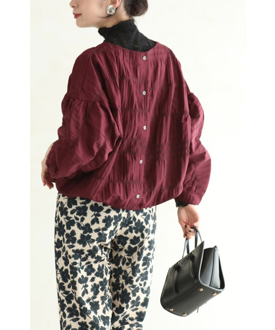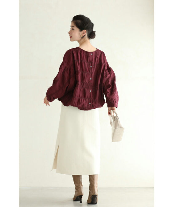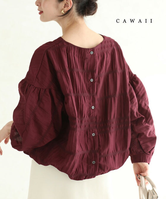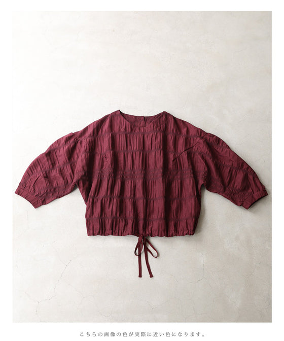 The button design on the back is also cute and mature, so it looks great from behind too♪ If you tighten the string at the hem, it creates a soft silhouette and is very cute♡