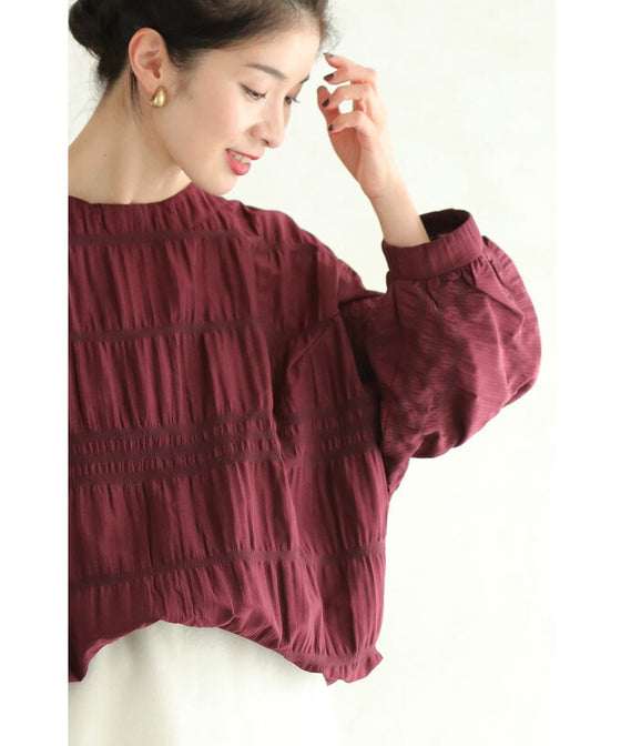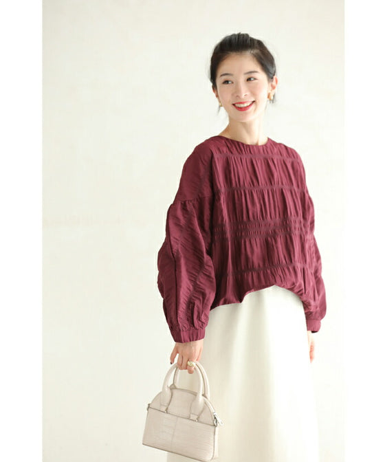 ■ The soft fabric and gathered hem create a rounded silhouette. Covers the body without showing any lines.
