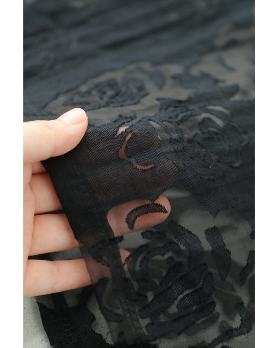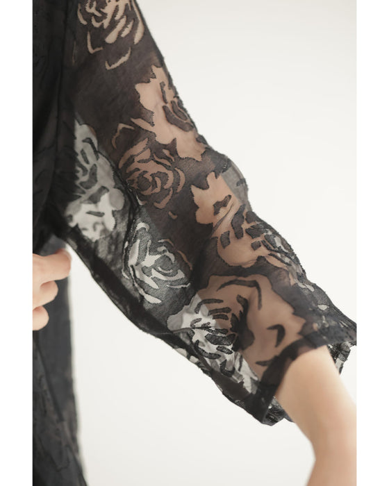 黒地に浮かび上がる薔薇の透かし模様が印象的でエレガントで奥行きのある表情が生まれ、まるで肌の上にバラが咲き誇るような幻想的な雰囲気を演出してくれます。