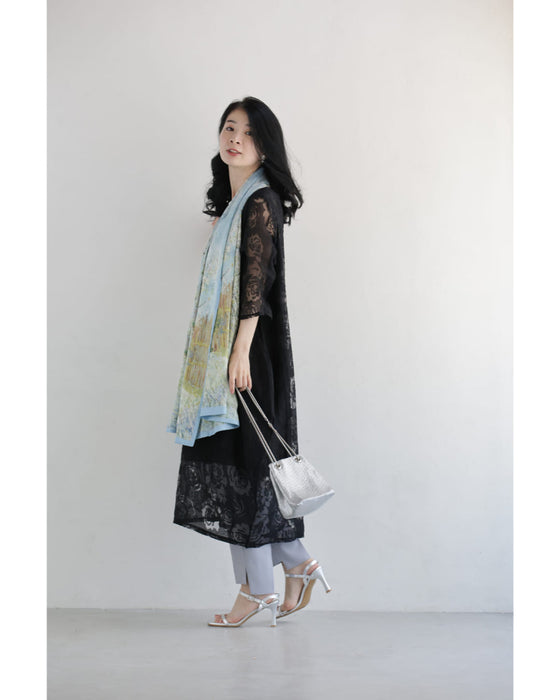 二枚仕立てになっており、異素材が重なり合うことで奥行きと上品な陰影を生み出し、立体感のあるデザインに仕上がっています。