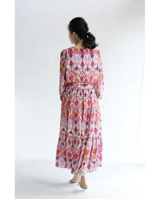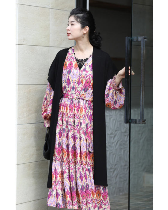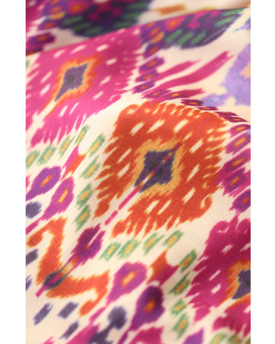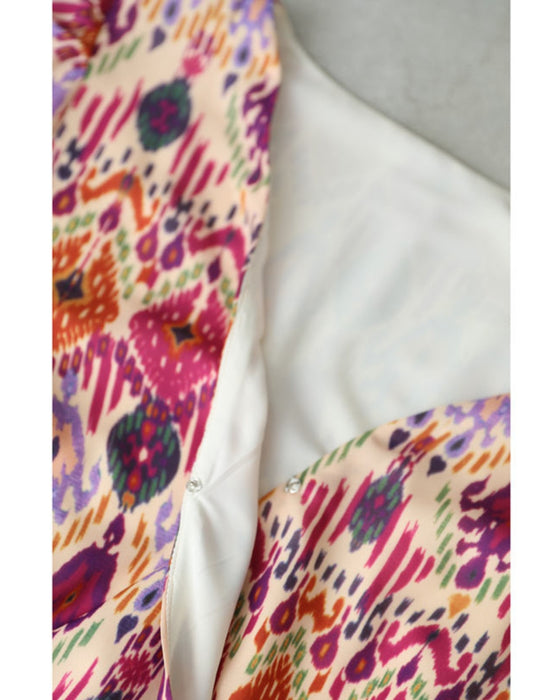 The vibrant colors of pink, orange, and purple make you feel bright and cheerful, and it gives the impression of brightening up the atmosphere around you as well. This is a piece that will lift your spirits when you go out.
