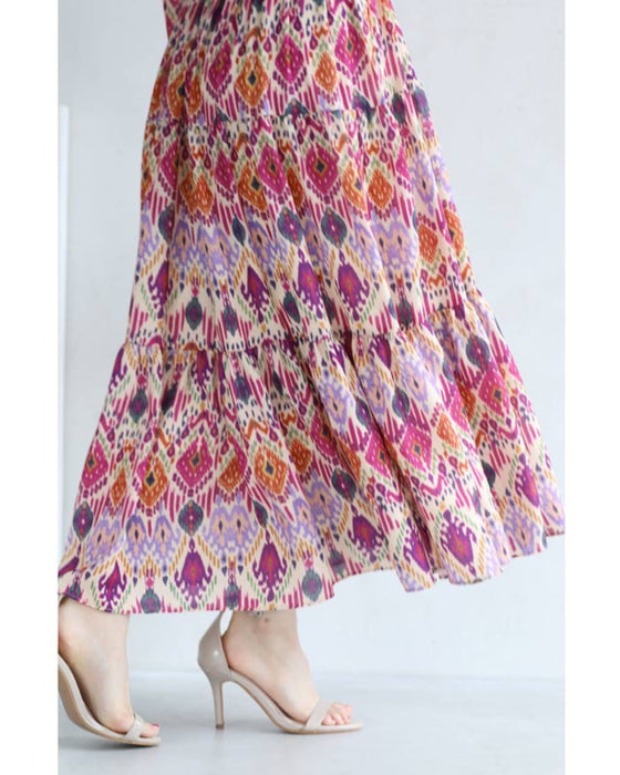 A one-piece dress that instantly brightens your look. A long dress with resort-style art print