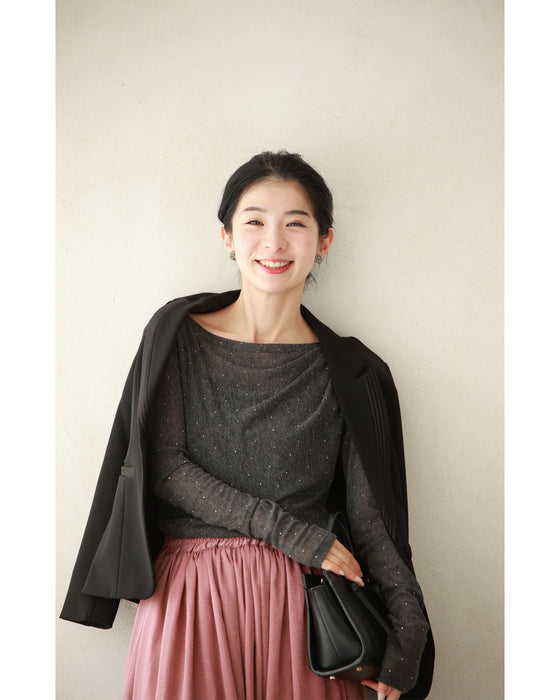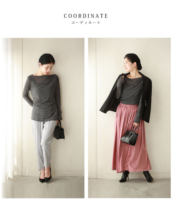 ■ Sheer, thin material <br>The thin, soft fabric feels good against the skin, and the three-dimensional flowing drape is beautiful. The slightly sheer fabric gives it a casual, elegant look.