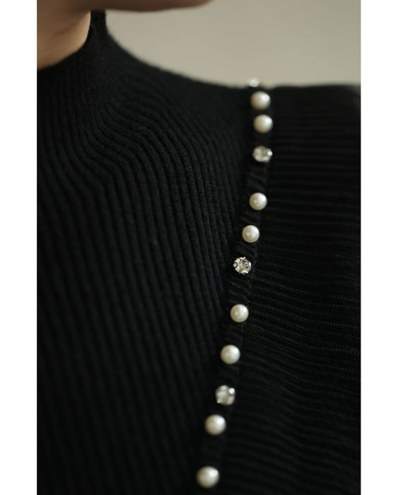 ■ Sparkling design that requires no accessories <br>The bijoux and pearls are arranged like a necklace, creating a gorgeous design around the neck, and the sparkling light reflects light.