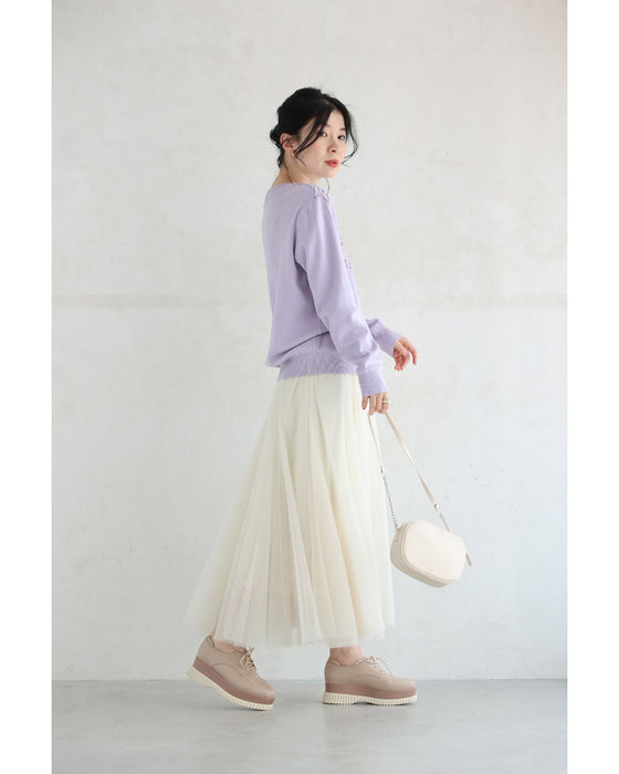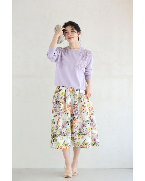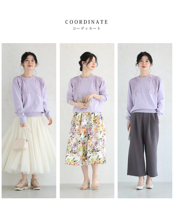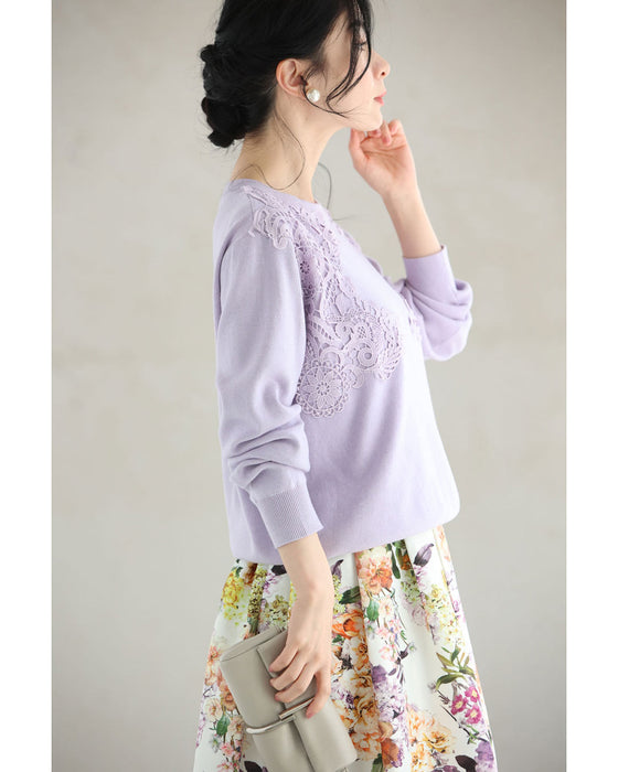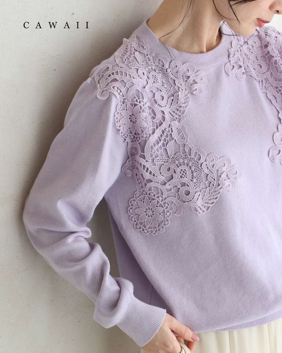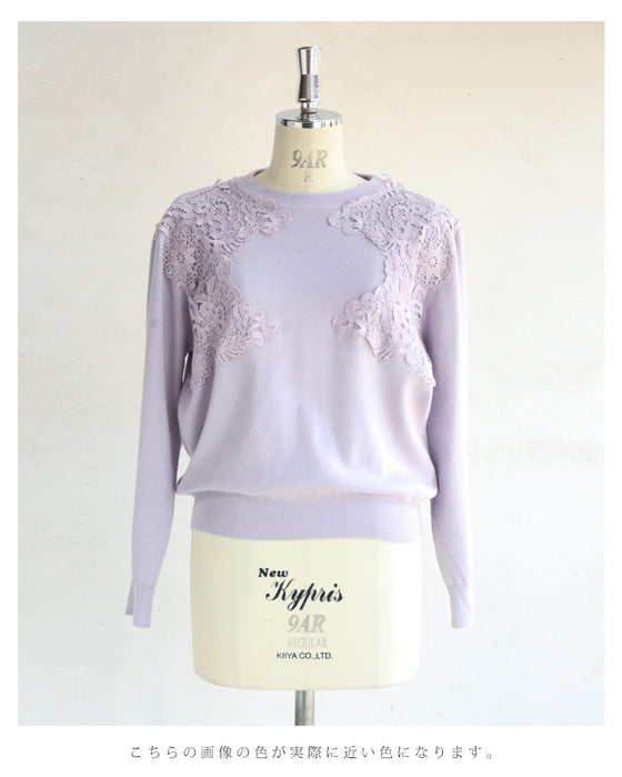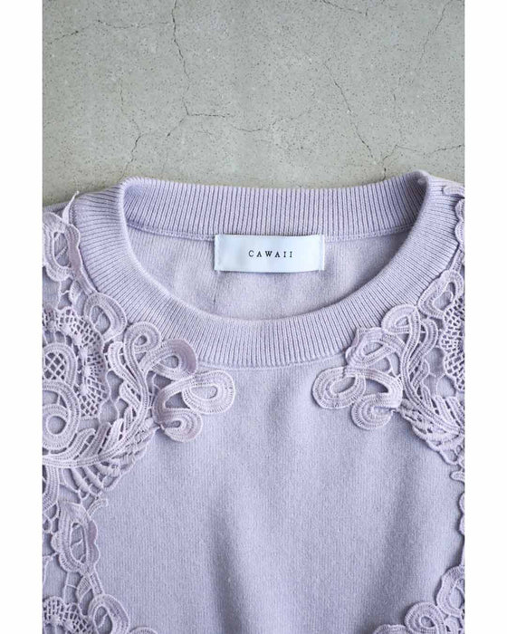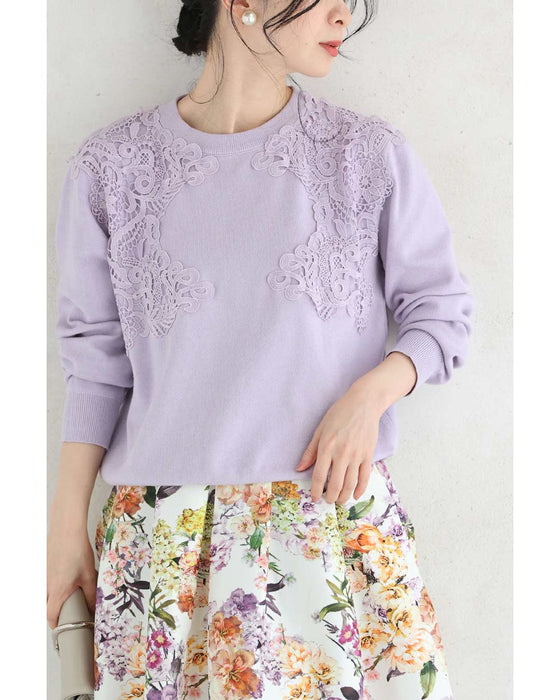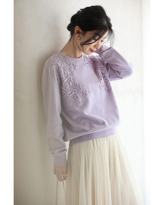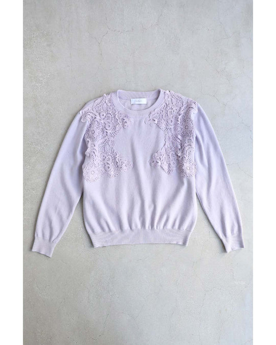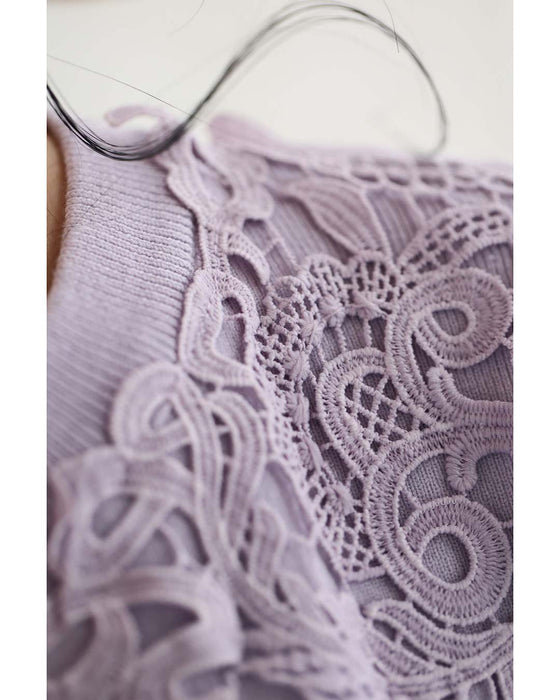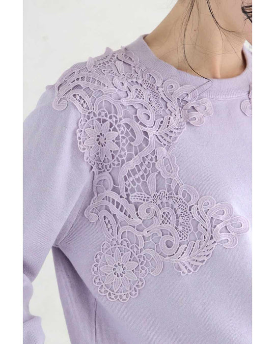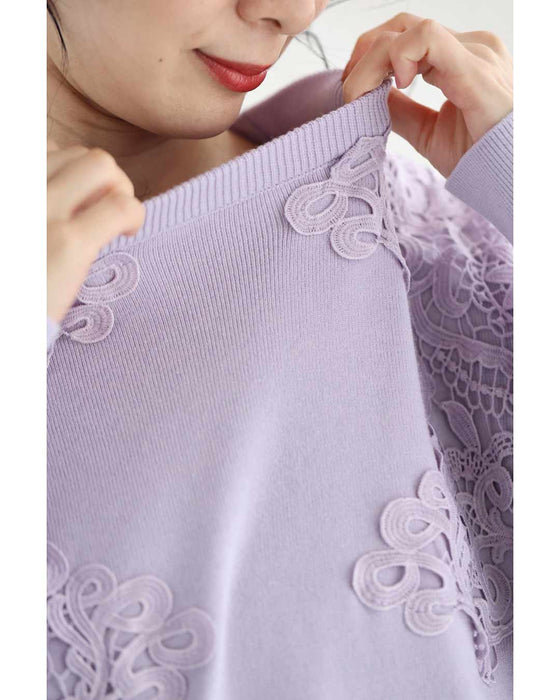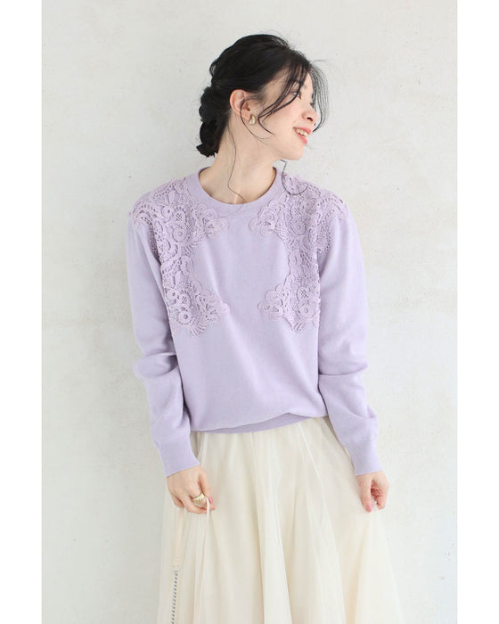 ミルキーパープルのデコレーションレースプルオーバートップス