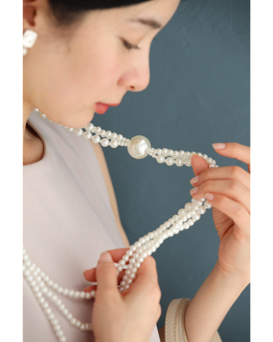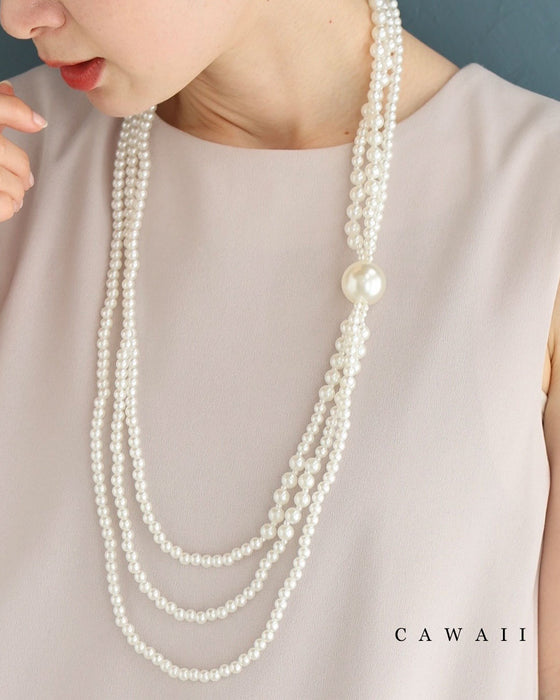 一粒が束ねる3連パールネックレス