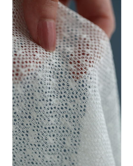 表地には繊細なレースを重ね、透け感と奥行きのある表情をプラス。
