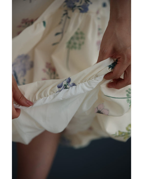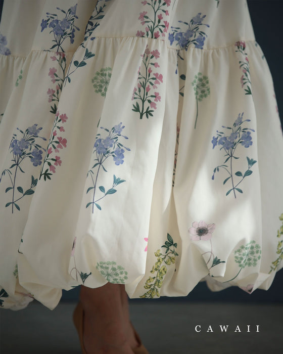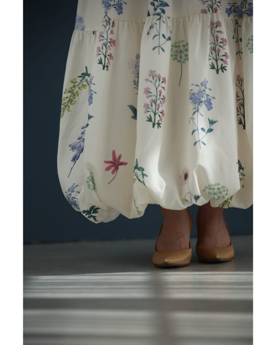 裾が軽く丸く立ち上がるバルーンデザインは、可愛らしさと軽やかさを演出。
