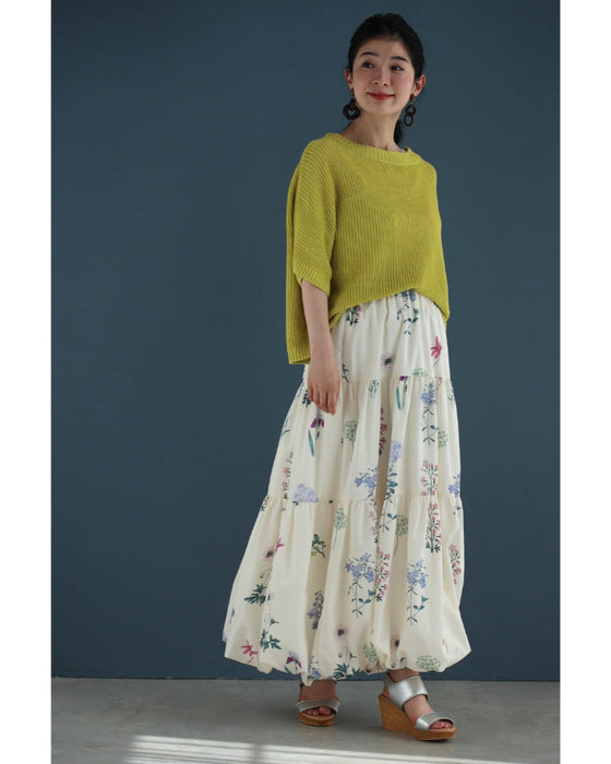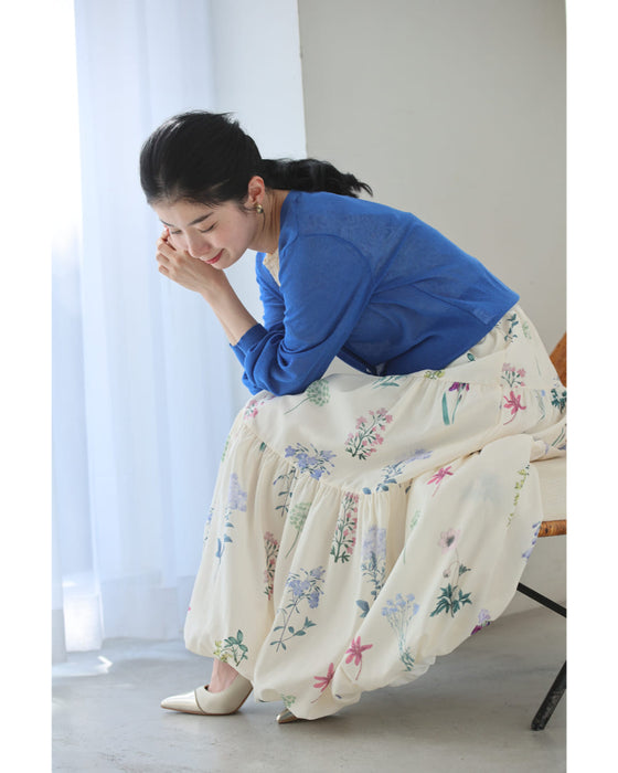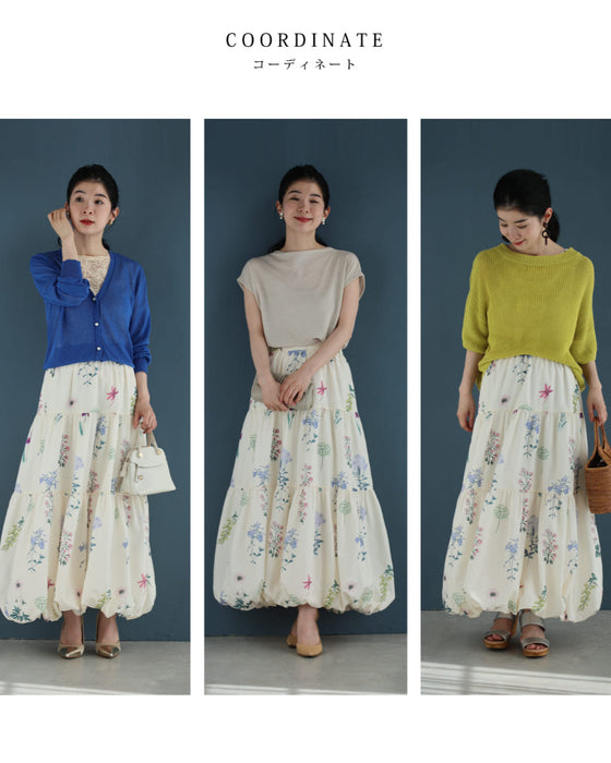 裾に自然な立体感が生まれ、シンプルなスカートも表情豊かに。裾の締まりがあることで、風が吹いてもめくれにくいのも嬉しいポイント。