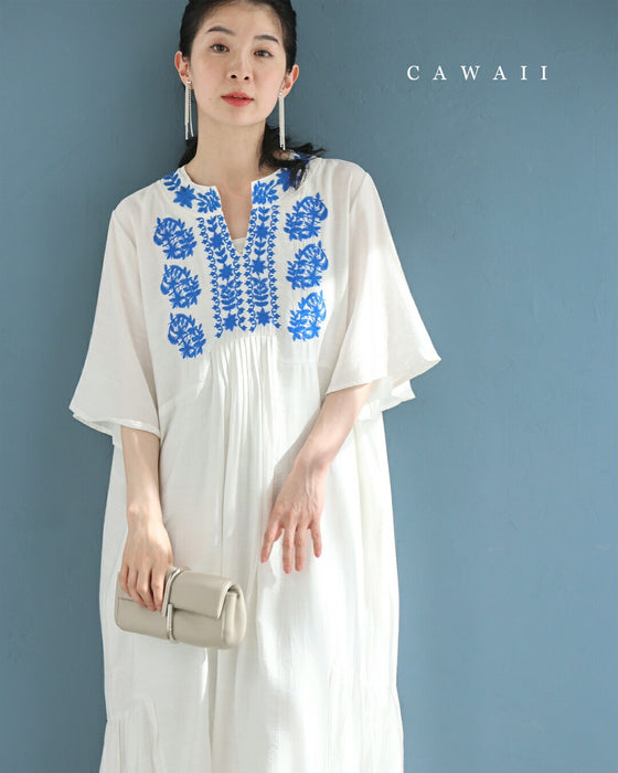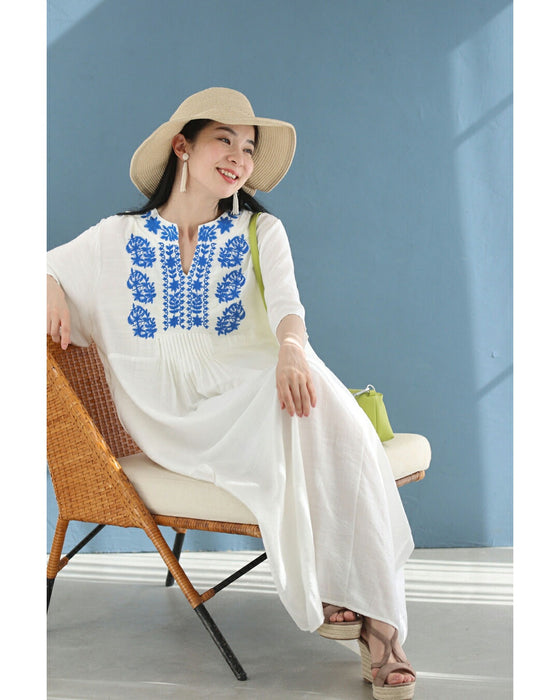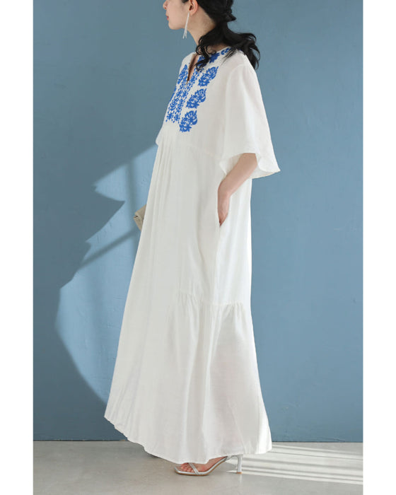 バカンスへ誘う涼やか刺繍ロングワンピース