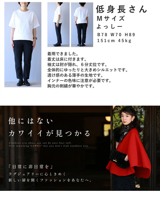 軽やかな素材とふわりと広がるAラインシルエットが、風をはらんで美しく揺れ、動くたびに優雅な印象を与えます。身体のラインを拾いにくく、気になる部分をさりげなくカバーしてくれるのも嬉しいポイント。