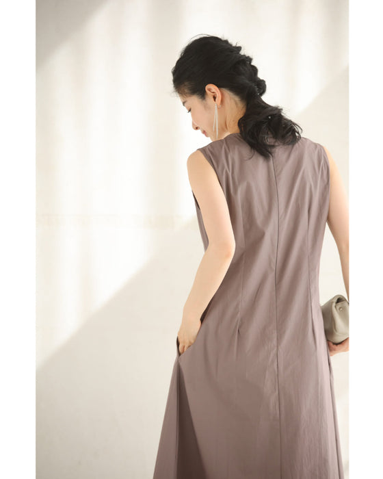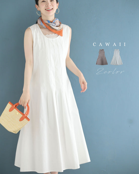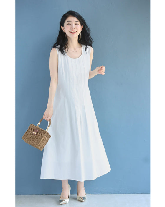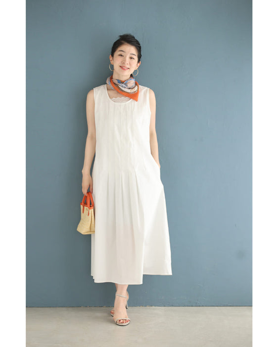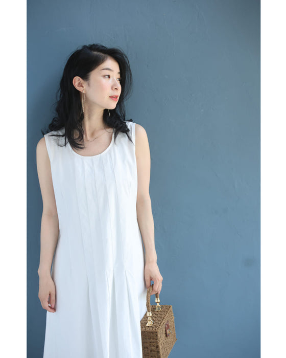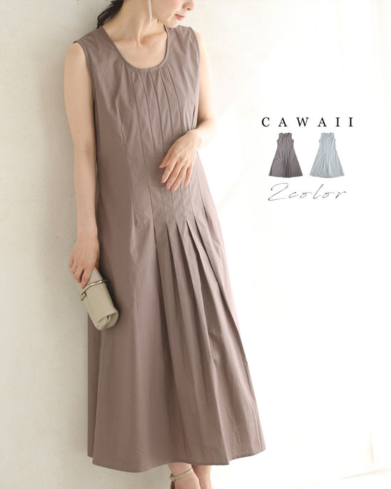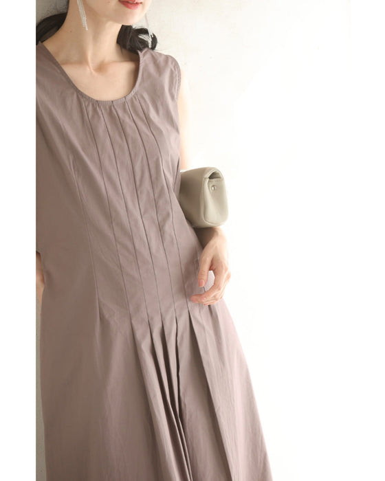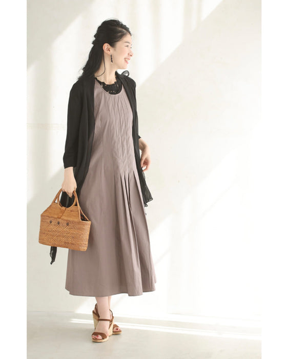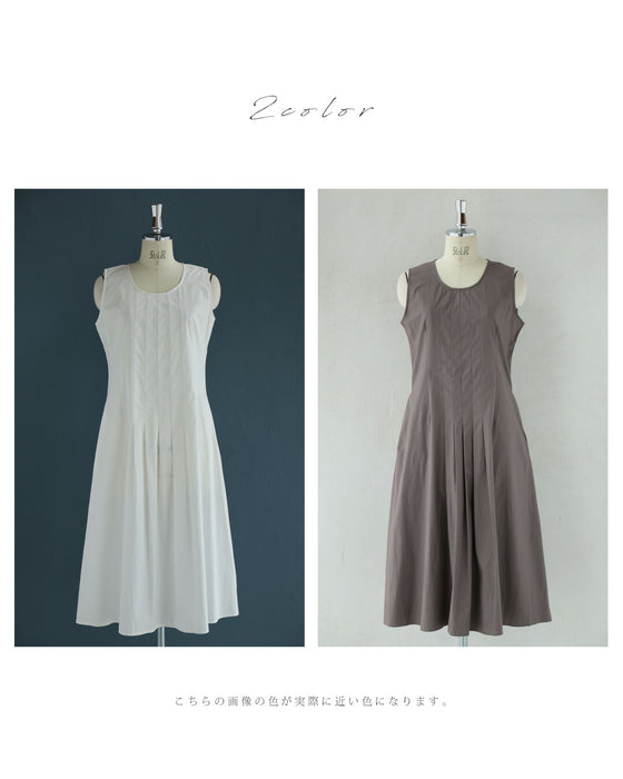 胸元から裾にかけて入った細かなタックが、立体感と縦のラインを強調し、スラリと見える美シルエットに。一枚で着映える大人ワンピースです。
