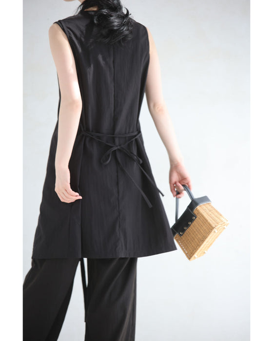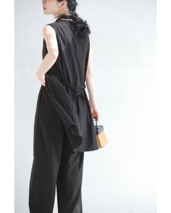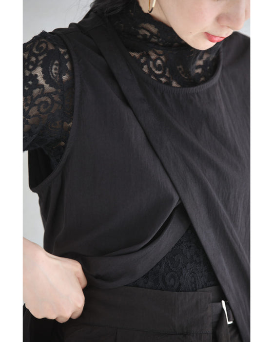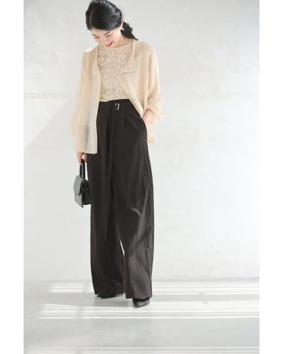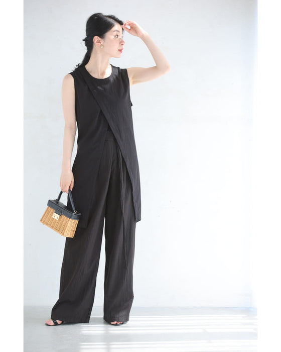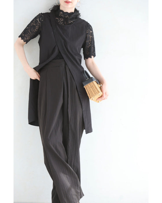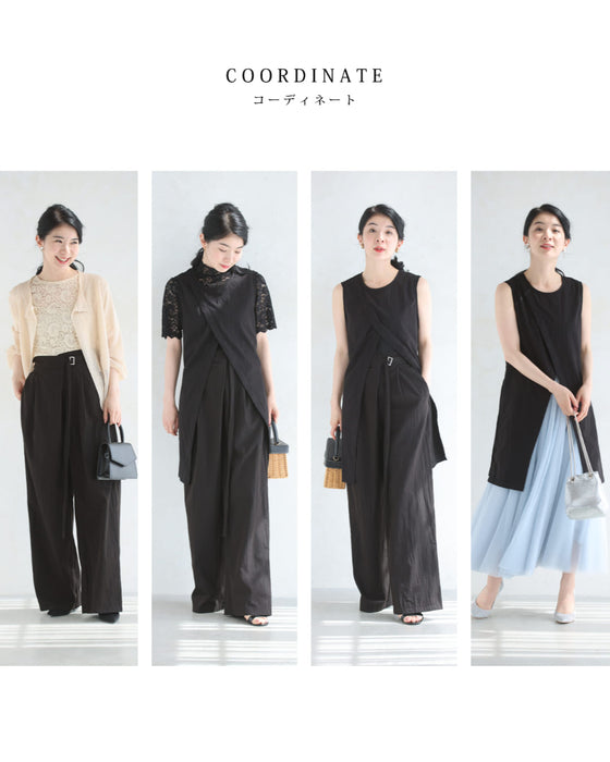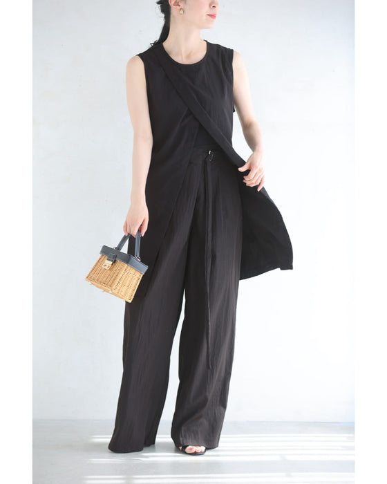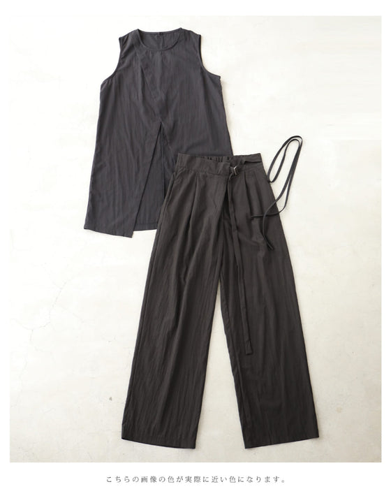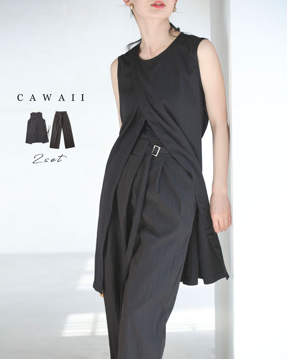 夏のモードなクロスチュニックとワイドパンツのセットアップ(紐ベルト付き)【set】