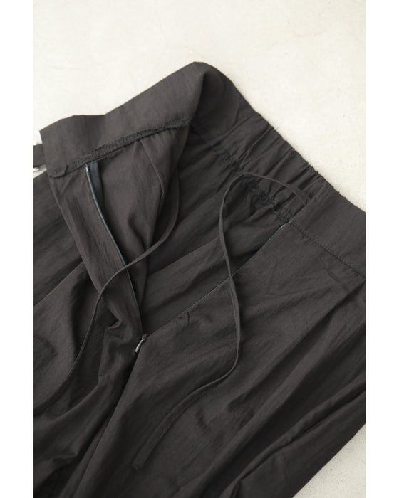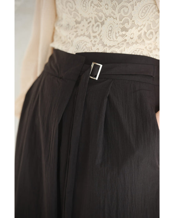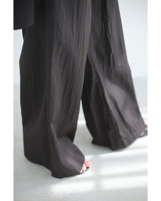 一見シンプルながら、ディテールにこだわりが詰まったこのセットアップは、着るだけでこなれ感あふれる印象に。トップスは前身頃の斜めに重なったデザインが特徴で、動きのあるシルエットを生み出し、自然に体型をカバーしてくれます。