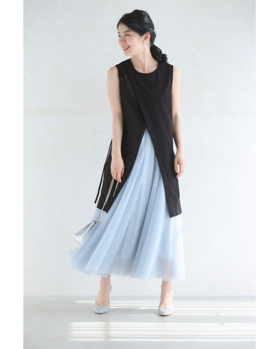 透け感のない薄手生地なので、1枚で安心して着られるのもポイント。軽やかで肌離れの良い素材感は、汗ばむ季節にもサラッと快適。シワになりにくく、旅行やお出かけにも◎