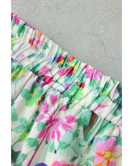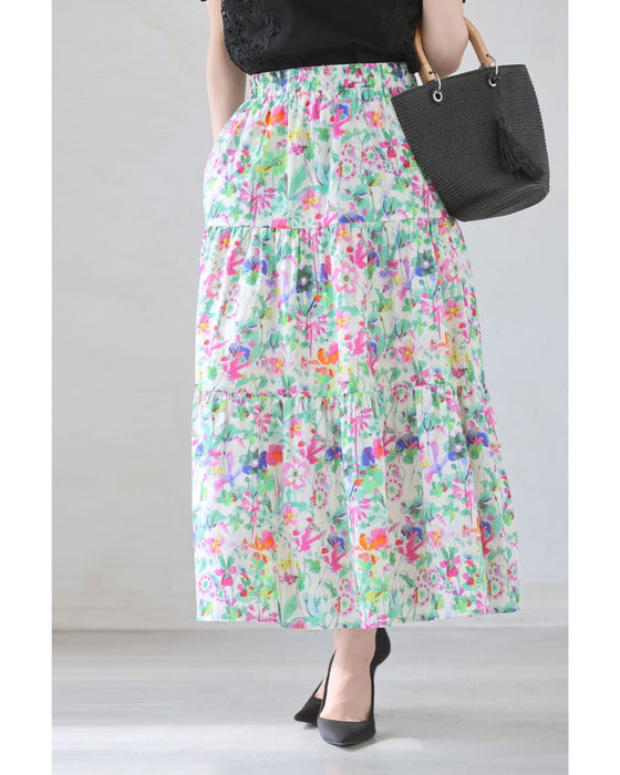 色とりどりの水彩花ティアードミディアムスカート