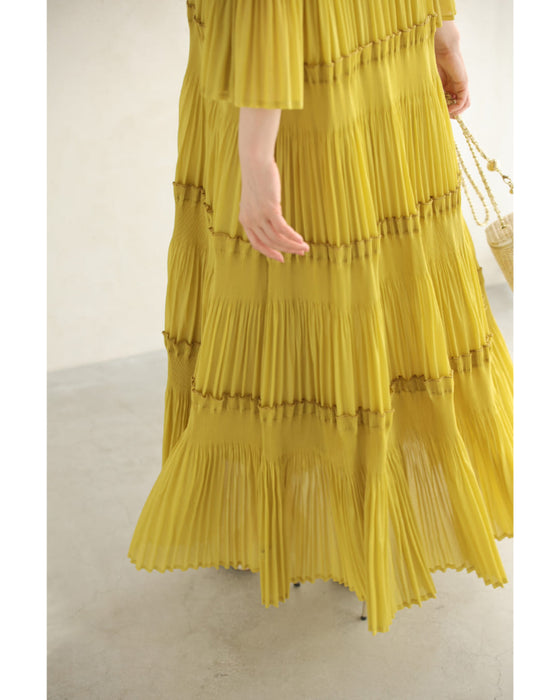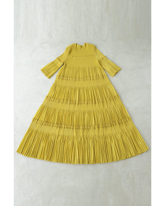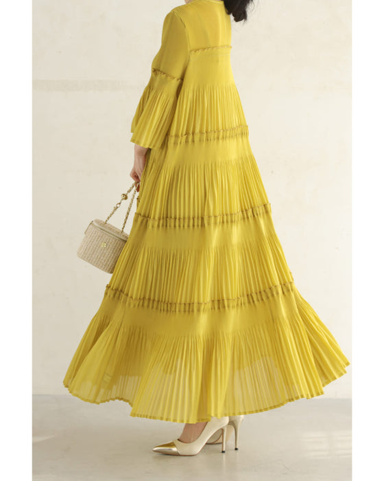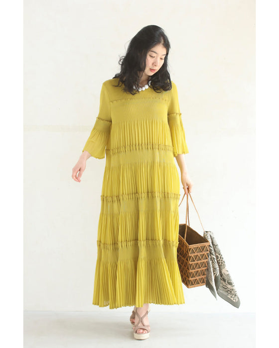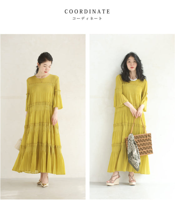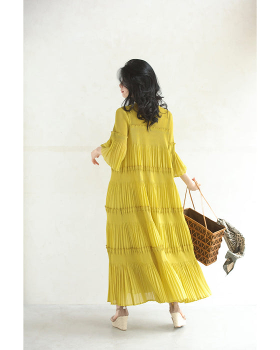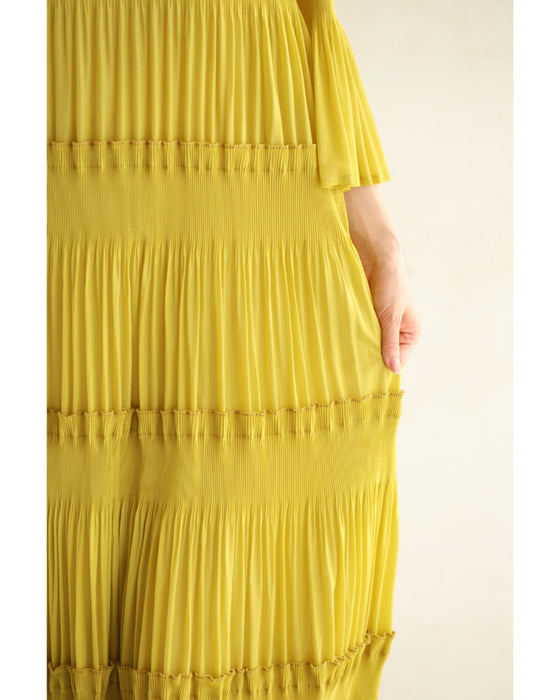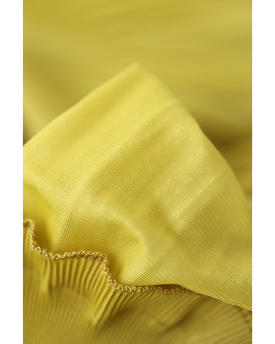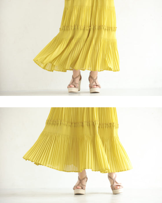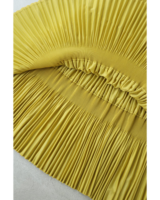 鮮やかなイエローは顔色を明るく見せてくれ、夏の日差しにも映えるカラー。ヒールを合わせれば華やかなパーティーシーンに、フラットサンダルでラフに着こなせば、リゾートやちょっとしたお出かけにもぴったりです。