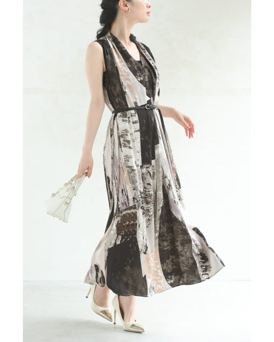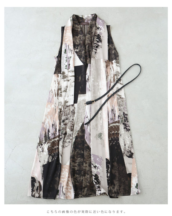 モード感漂うアート柄が目を引く1枚。落ち感のある素材が美しく揺れ、歩くたびに優雅な表情を演出します。付属のベルトを使えば、ウエストを引き締めたメリハリのあるシルエットに。ベルトなしならリラクシーでエフォートレスな装いに。気分やシーンに合わせて、2通りの着こなしが楽しめる大人のワードローブです。