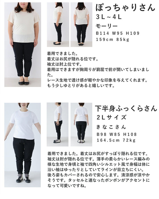 繊細なサークル柄の総レースが、涼やかで軽やかな印象を演出。透け感のある素材が夏らしさを引き立て、いつものコーデに抜け感をプラス。