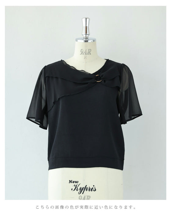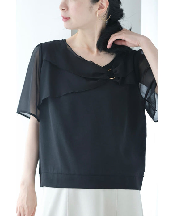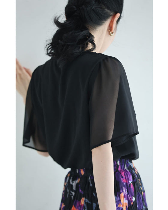 ボリュームを抑えたデザインで、すっきり見せと体型カバーを両立。透け感のある軽やかな袖が、重たく見せずに気になる部分を自然にカバーしてくれます。