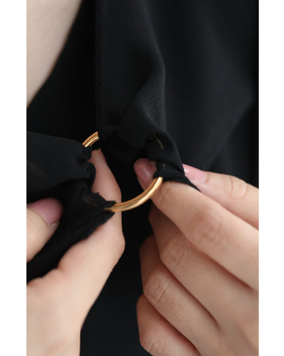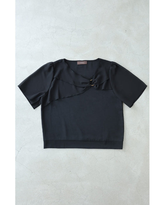 デコルテにほどよい華やぎを添える、上品なリボンディテール。装飾過剰にならず、きれいめスタイルにもカジュアルにもマッチ。