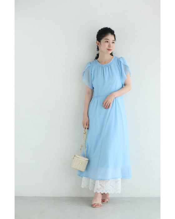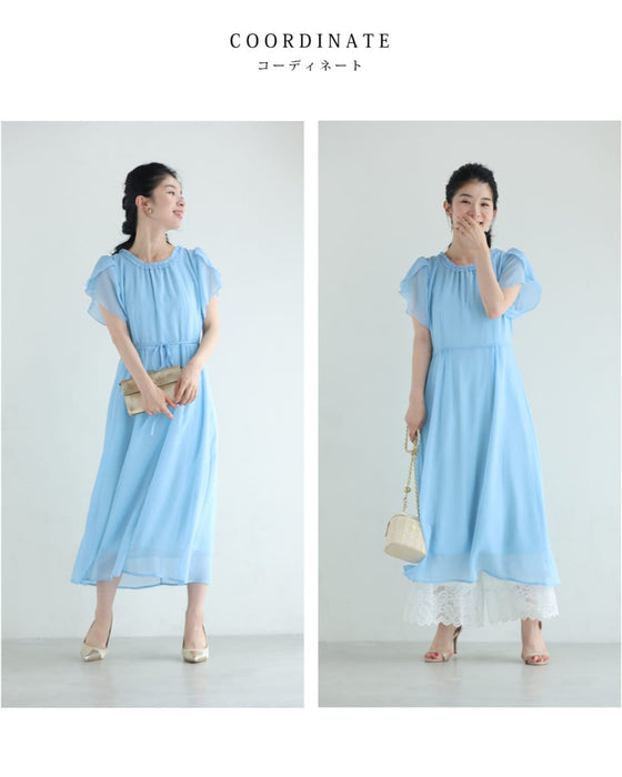 澄み渡る空色ブルーのシアーベールミディアムワンピース