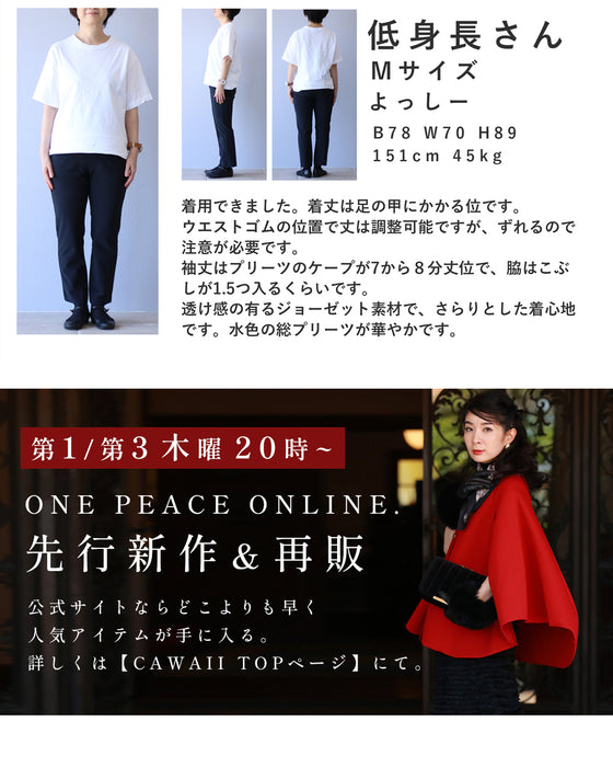 ゆとりのある袖が気になる二の腕を自然に包み込み、体型カバーと涼感を両立。大人の女性に嬉しいディテールです。