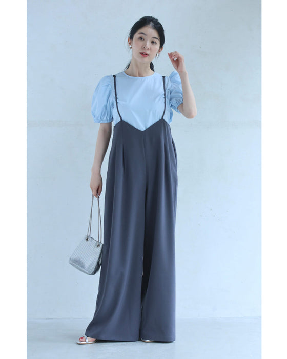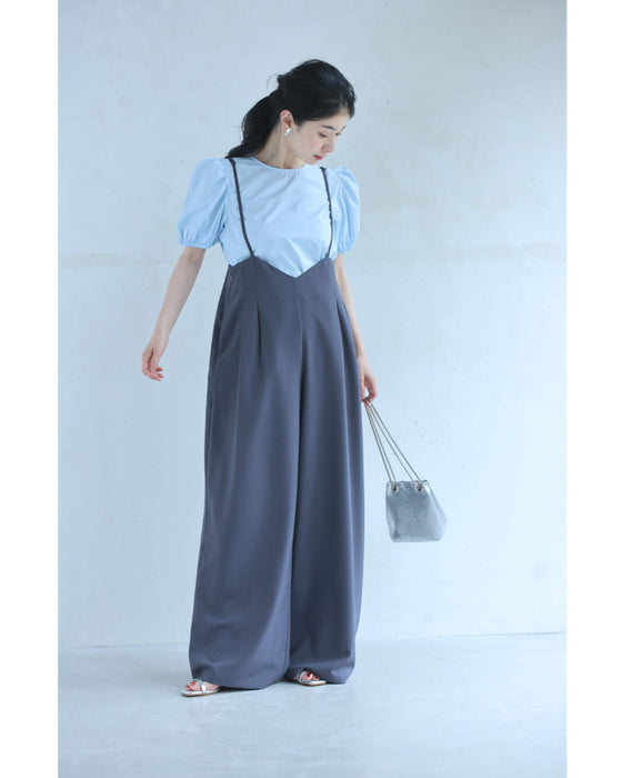 パフスリーブカットソーとサロペットの2点セット【set】