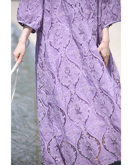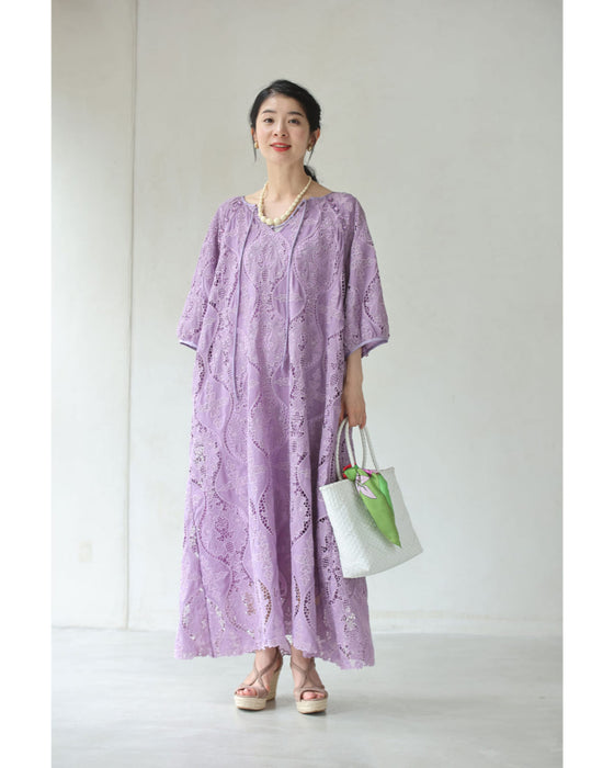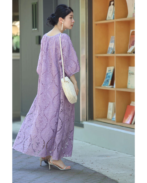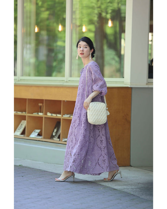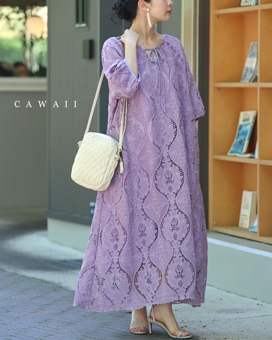 美しさ際立つ華やぎレースロングワンピース