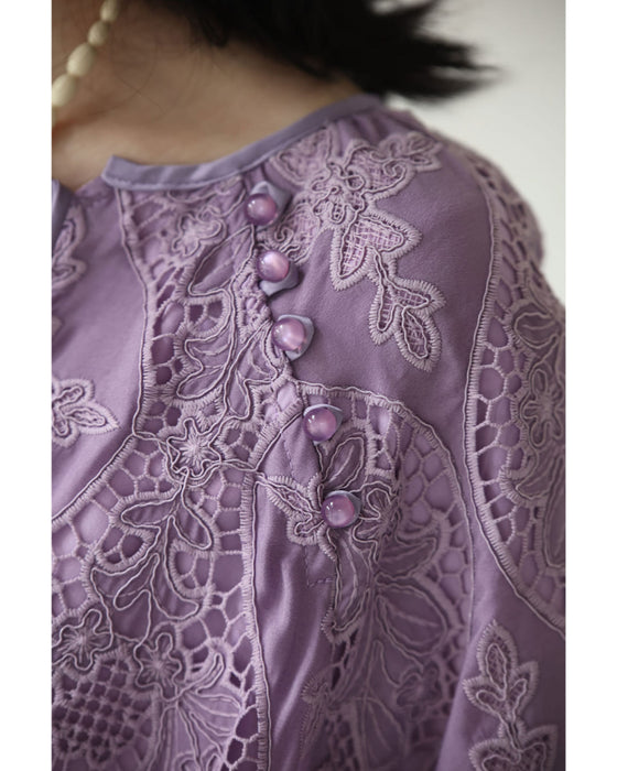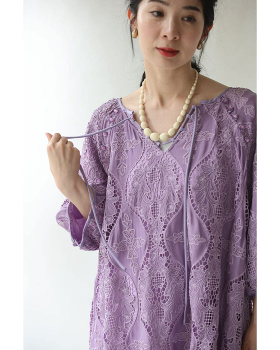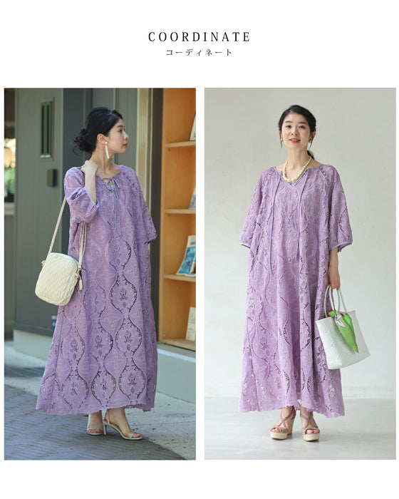 しなやかなレース素材は動きに合わせて軽やかに揺れ、見る人の目を惹きつけるドラマティックな存在感を演出。歩くたびにふわりと表情が変わるのも魅力です。