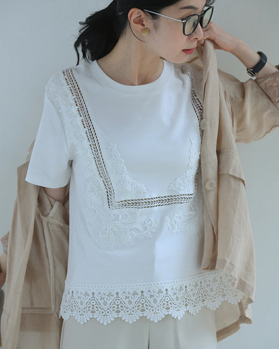 日常にひと匙のエレガント レースTシャツ