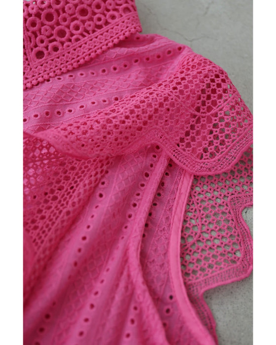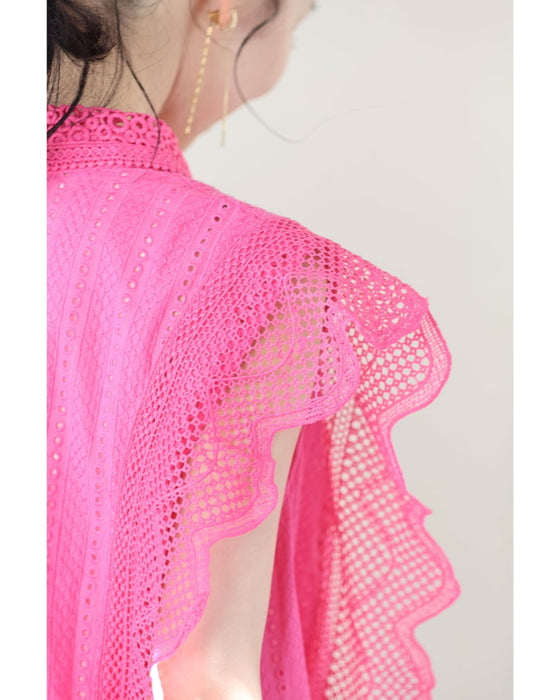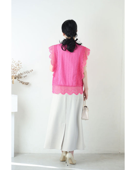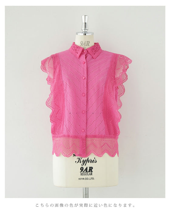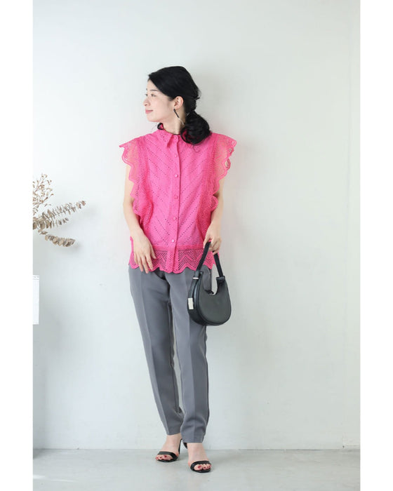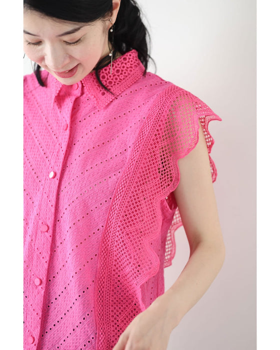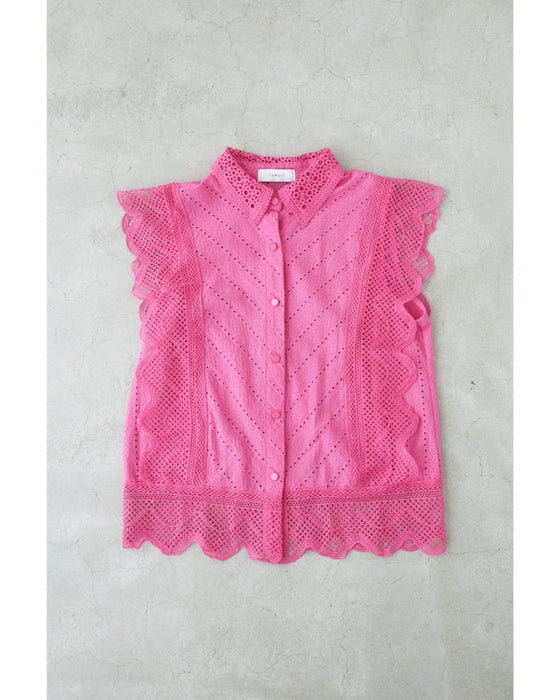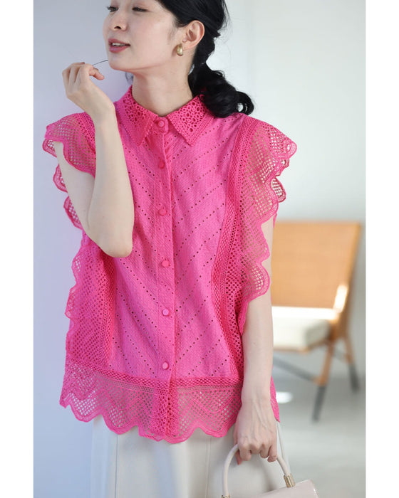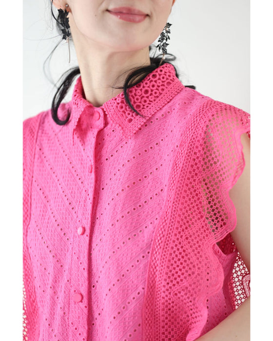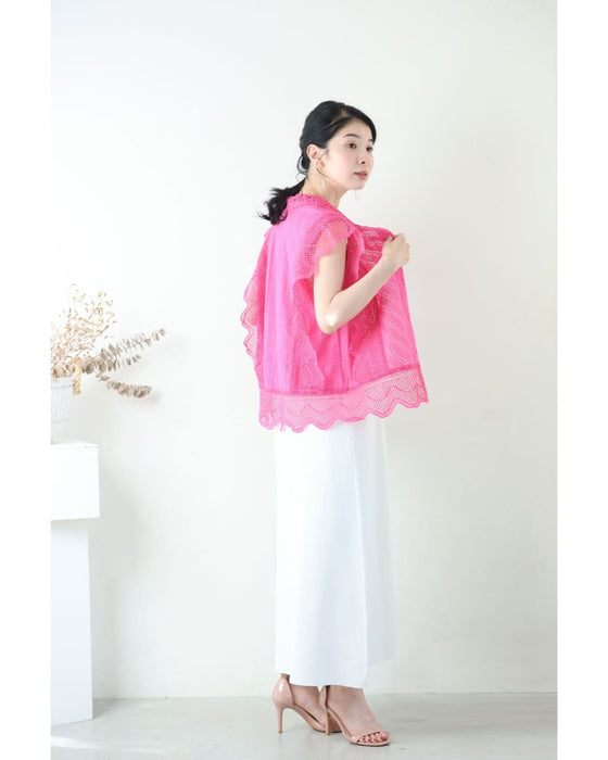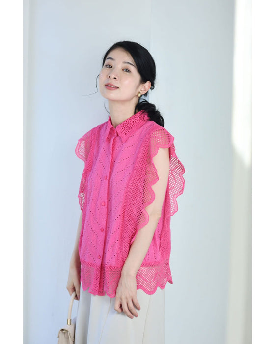 ビビッドピンクのスカラップレースブラウストップス