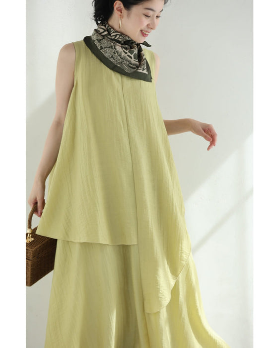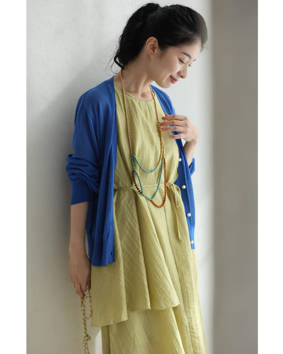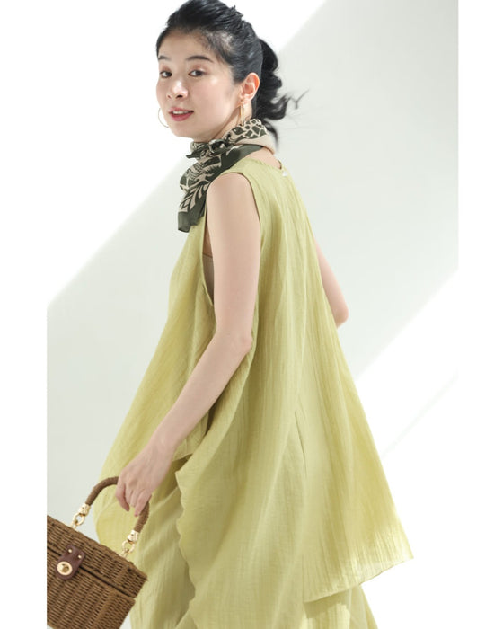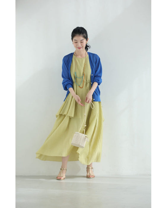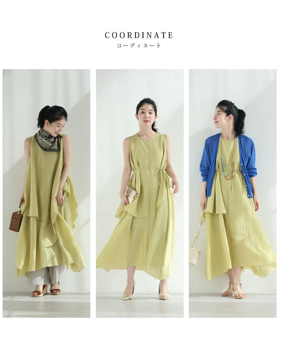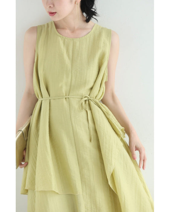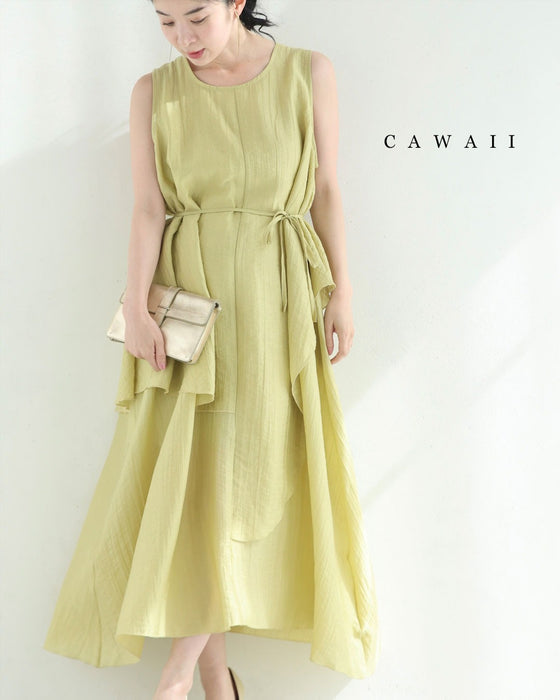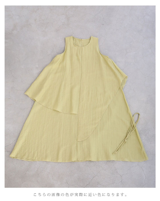 アシンメトリーに重なるフレアの涼やかミディアムワンピース(紐ベルト付き)