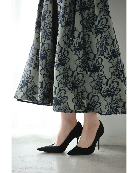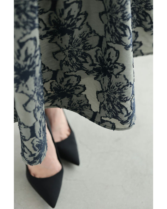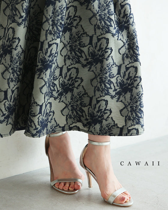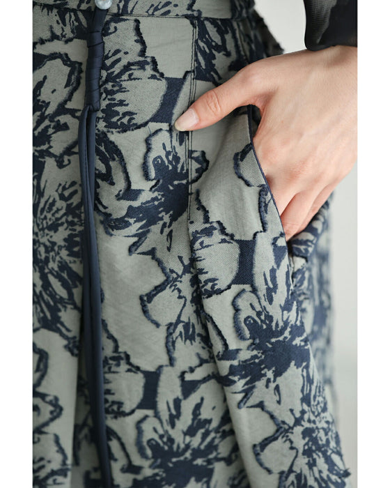 上質な花柄ジャガード生地を使用しており、華やかさとエレガンスを兼ね備えています。洗練された大人の女性にぴったりのアイテムです。