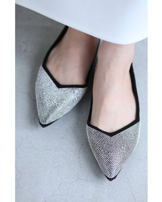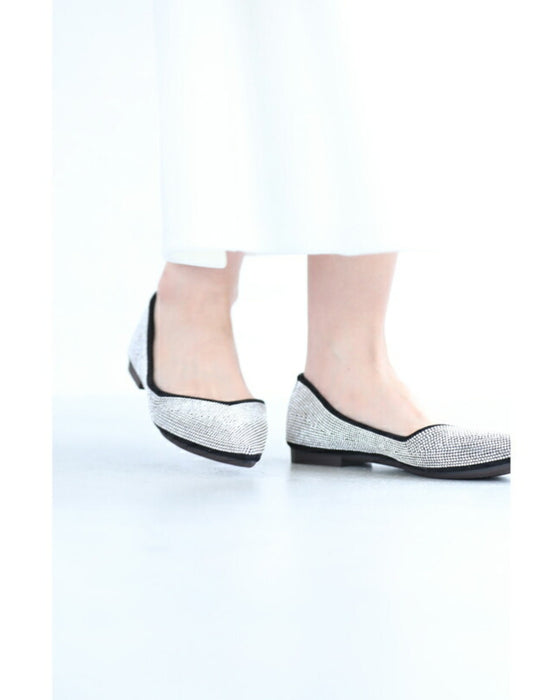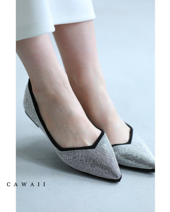 Soft and comfortable to wear. Flat pumps with dazzling rhinestones