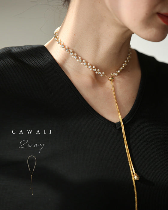 チョーカーにもなる2way仕様。交差するビジューネックレス