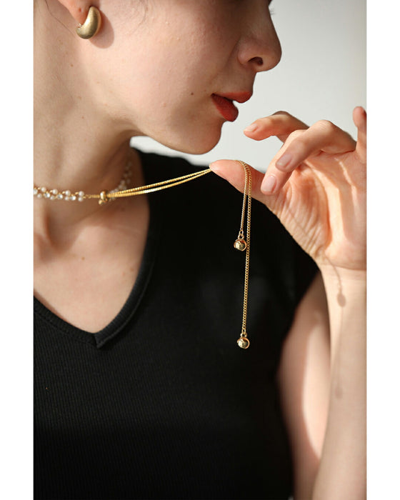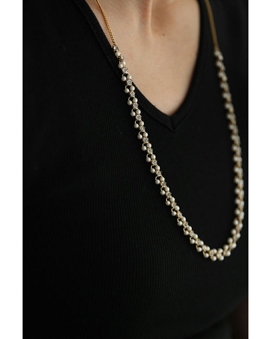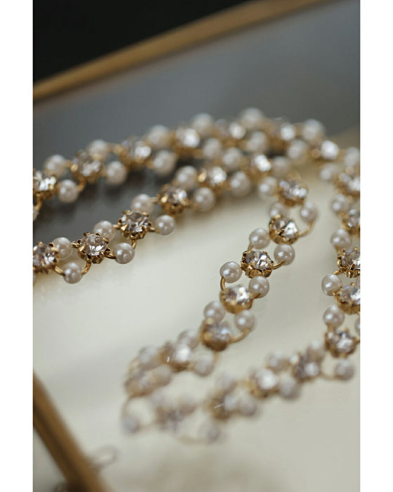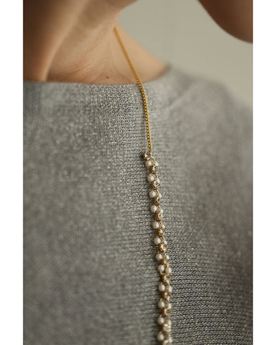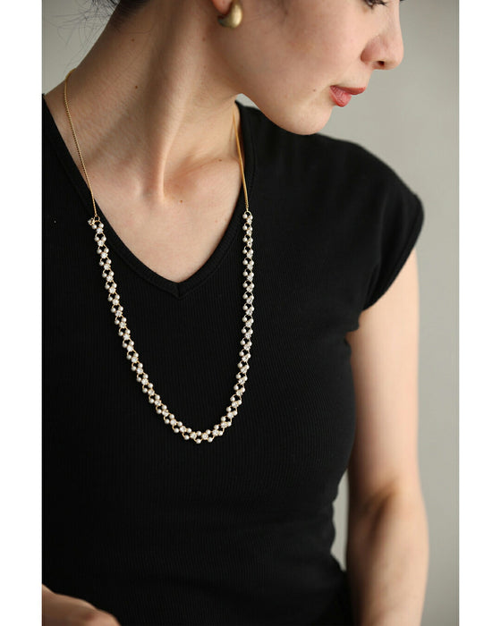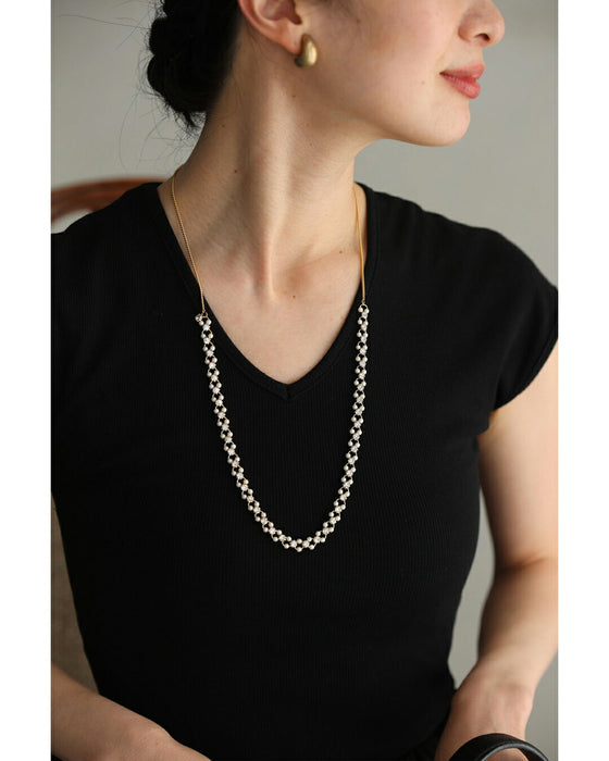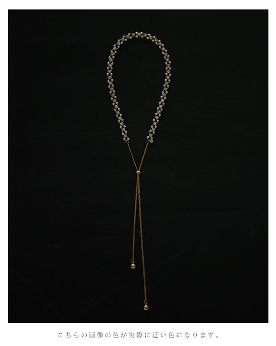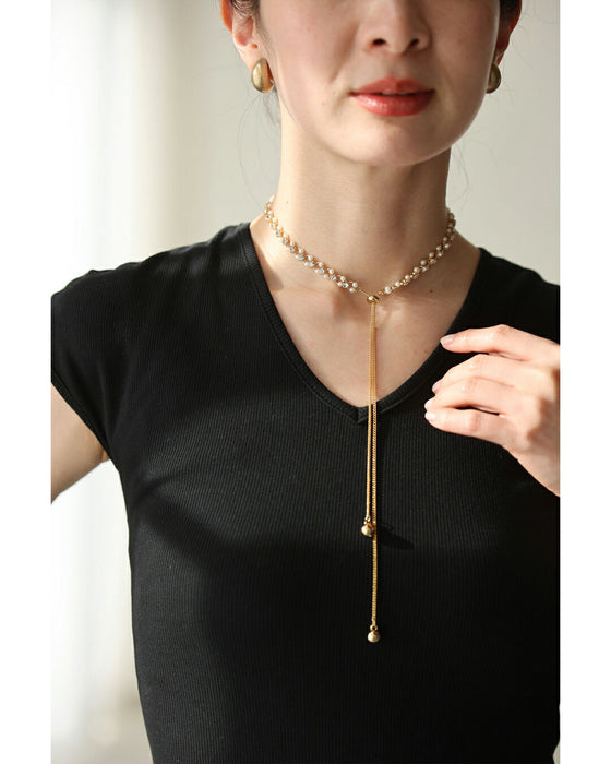 チョーカーとして着用すれば、首元にぴったりと沿うエレガントな印象に。ビジューの輝きが顔まわりを明るくし、洗練された大人の雰囲気を演出します。一方、ネックレスとして使用すれば、程よい長さでデコルテを美しく見せ、シンプルなトップスやドレスとも相性抜群。さりげないパールの存在感が上品さを際立たせ、カジュアルからフォーマルまでさまざまなスタイルにマッチします。