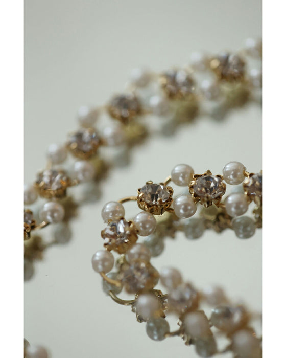 煌めくビジューと小ぶりなパールが織りなす上品な輝きが魅力。気分やスタイルに合わせて使い分けられるので、日常から特別なシーンまで幅広く活躍します。